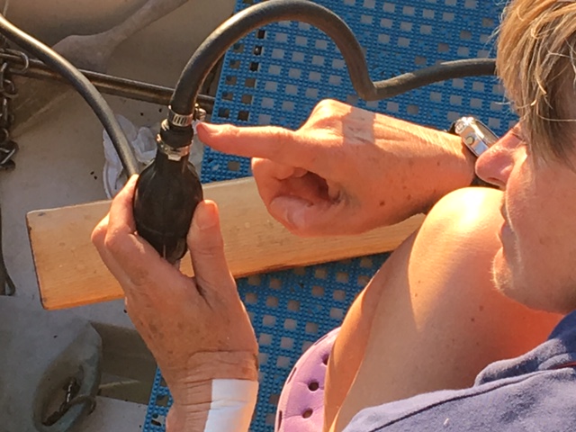 Hohe Düne. Konsequente Fehlersuche hat noch immer geholfen. Unser Außenborder verstarb immer kurz nach dem er angesprungen war. Nachdem ich aufgegeben hatte und das Telefonbuch nach Technikern durchsuchte ist Leni noch mal ins Boot. Hat die Spritleitungen noch einmal konsequent untersucht und schließlich an der Ballpumpe eine lose Schelle gefunden bei dem je nachdem wie sie lag Luft eindrang oder eben nicht. Tüchtig, meine Maschinistin! Sea U Bert