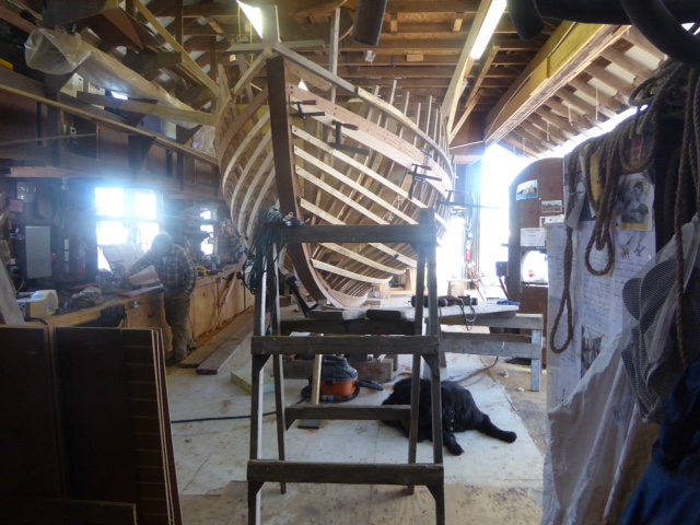 Edgartown MV. Hier werden noch hölzerne Schiffe gebaut: Black Dog Shipyard. Namensgeber liegt unter dem Schiff. So habe ich meine Jugend verbracht, unter und auf hölzernen Schiffen. Sea U Bert