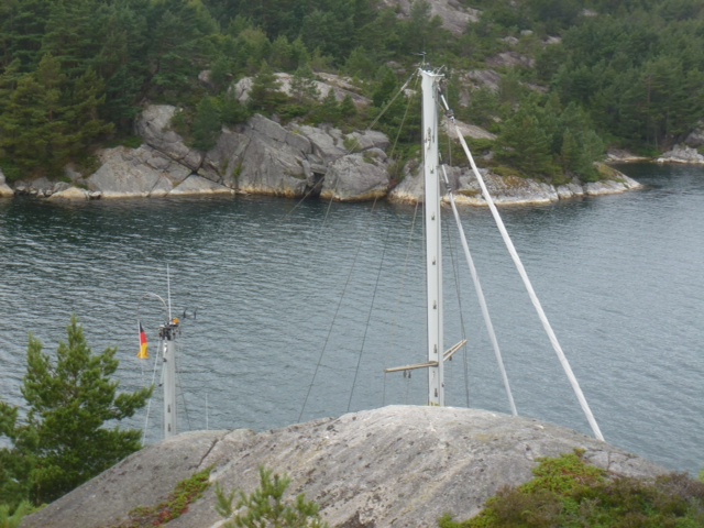Immer noch am Felsen, immer noch viel Wind und alte See. Morgen früh wollen wir los von unserer Bergstation. So etwa 40 Meilen nach Norden, da liegt Skudeneshavn auf der Südspitze der großen Insel Karmoy. Nirgendwo in Norwegen soll es so viel alte Häuser geben wie dort. Falls der Wind uns nicht lässt, können wir auch nach Stavanger gehen, gleiche Entfernung. Nach drei Tagen völliger Einsamkeit möchte Leni Softeis.. Sea U Bert