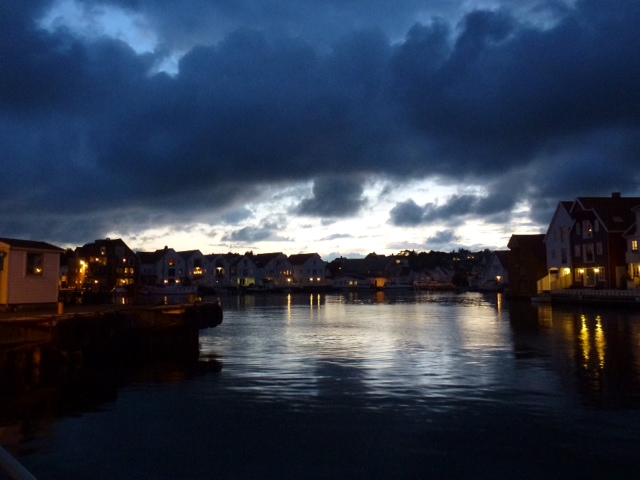 Karmoy, Skudeneshavn. Das Auslaufen war großer Mist. Das Wetter hat sich leider nicht an die Vorhersage gehalten. So empfing uns heute Morgen knapp nach dem Frühstück eine dicke See von gut 2 Meter. Kurz und steil.. Der Wind war sechs, und das ist hier draußen schon eine Menge. Wir sind mit ausgebaumtem Klüver und dem Norwegenstrom dann mit 8 Knoten über Grund nach Norden gebraust. Nach der Hälfte der Strecke kamen zwei heftige Gewitter mit noch heftigerem Regen, dann wurde es verträglicher. Regen bügelt die See hat mein Vater gesagt. Da hat er wiedermal recht gehabt. Abends, siehe Foto, tut die Nordsee, als wenn nichts gewesen wäre. Sea U Bert