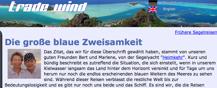 Wir haben gemeinsam den Atlantik überquert und uns viele Male in der Karibik und in den USA wieder getroffen. Sie haben ähnliche Empfindungen auf See wie wir sie haben.