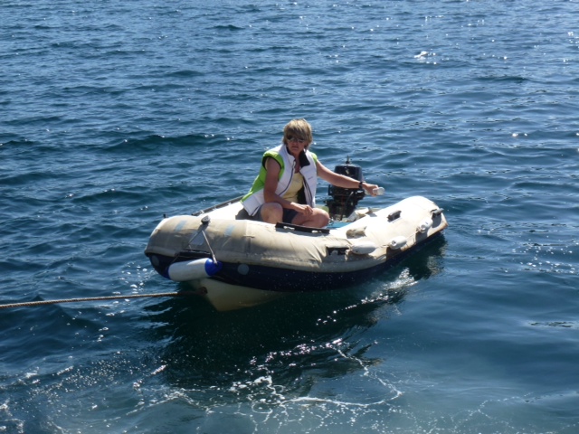 Stärker aufwändiger Wind und vorn und hinten Steine. Also zieht Leni mit Beiboot (18PS) kräftig von der Seite. Rückwärts steuert es sich am leichtesten.. Sea U Bert