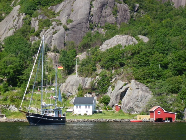 Ana Sira. Das klingt für mich wie der Vorname einer schönen Norwegerin. Und schön ist dieser Fjord ganz ohne Zweifel. Wir sind hier geblieben, können uns nicht trennen von der Schönen. Sind heute alles mit dem Beiboot abgefahren, auch den Fluss rauf. Ach ja, der Fjord hat Süßwasser und einen tüchtigen Strom. Bevor der Fluss in den Fjord fließt, macht er erstmal Strom für die Gegend. Wir machen aus dem Süßwasser erst einmal Reinschiff und waschen das ganze Salz aus den Ecken der Heimkehr. Abends Schweinefilet mit Rosmarinkartoffeln ohne Rosmarin und Zwiebel-Pfannensauce. Morgen wollen wir weiter, ein Stückchen weiter soll ein Museumsdorf mit Hafen sein. Grobe Richtung Stavanger. Zur Zeit kein Wind für die Shetlands. Sea U Bert