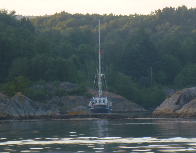 Eikvag. Wir kennen diesen Platz schon seit vielen Jahren. Zuletzt waren 2006 hier. Andere Segler haben ihn bisher nicht entdeckt. Der Platz liegt in Beiboot Entfernung von Farsund. Morgen soll der Wind günstig sein, da wollen wir um die Ecke (Lista) nach Ana Sira, einem weiteren Lieblingsplatz. Sea U Bert