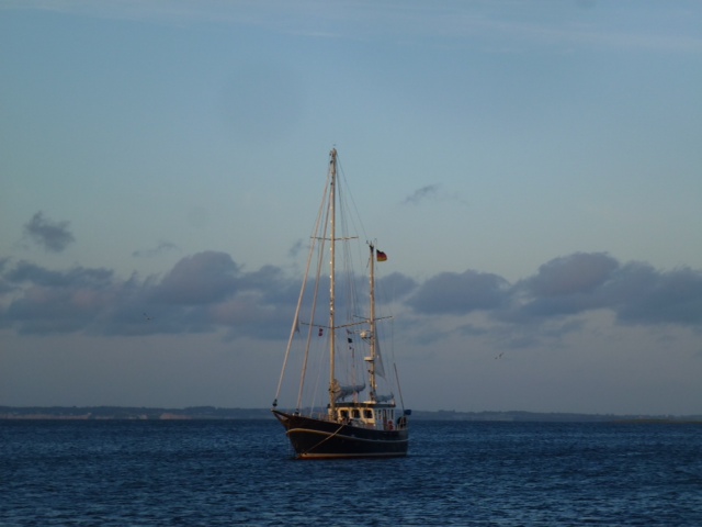 Limfjord, vor Anker. Heute große Radtour über die hügelige Insel. Die Fur Kirke war schon unsere Ansteuerung. Den eigenartigen Berg haben Kieselgur- und Ascheschichten so entstehen lassen. Eine hübsche Insel. Morgen (Dienstag) geht’s weiter, vermutlich nach Glyngöre, das liegt hier gleich um die Ecke. Wir haben viel Zeit, weil’s auf der Nordsee in den nächsten Tagen nicht so gut für uns passt. Geduldiger Skipper hat immer guten Wind. Schön, das wir Zeit haben. Heute Abend gab es Schweinefilet mit Süß-Karotten. Die Möhren in Streifen schneiden, in Öl kräftig anbraten und braunen (da gibt’s hier in DK Brun Farin) Zucker drüber, noch etwas weiter schmurgeln lassen. Zum Schluss etwas sahniges drüber, wir nehmen Kondensmilch, um Fett zu sparen. Rezept ist von Marianne. Sea U Bert