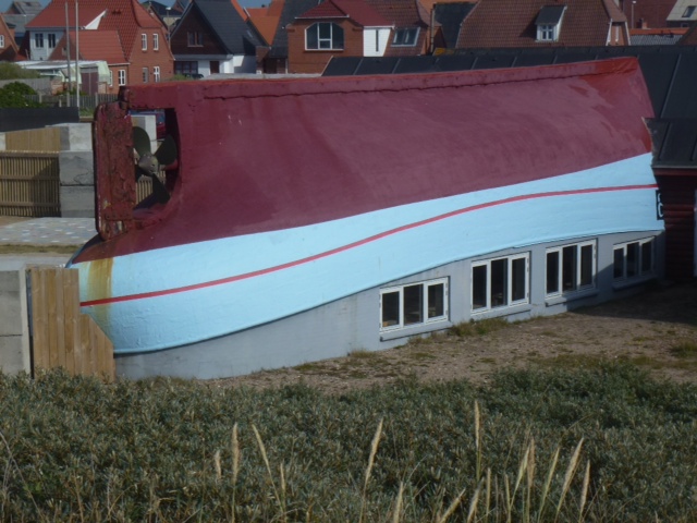 Thyboroen. Einen Fischkutterrumpf als Dach, hat dieses Restaurant in Thy, wie man hier abgekürzt sagt. Sea U Bert