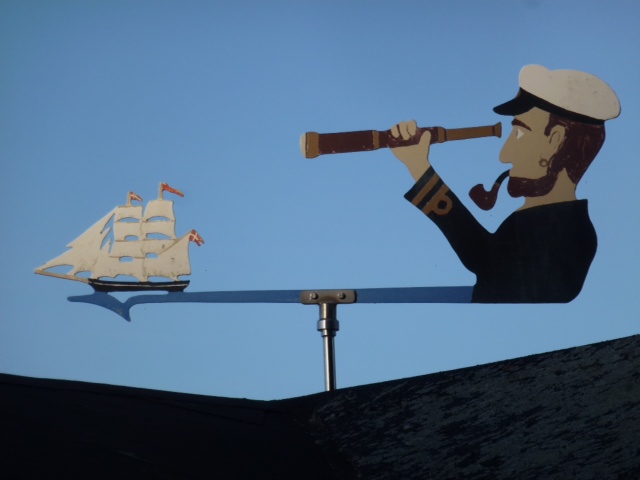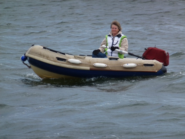 Rebaek . Wenn’s denn losgeht von der Mooring, muss unten jemand losschmeißen. Das macht bei uns die Maschinistin. Wir hatten 6 Windstärken, da ist dann sehr viel Dampf auf den Leinen. Beide Leinen doppelt schamfielt (scheuert) zu sehr. Also dampfe ich etwas auf und Leni schmeißt los. Bei dem Wind springt das Beiboot wie ein Ziegenbock. Da ich sie vom Ruderhaus nicht sehen kann, weist sie mich über Funk ein. Später nehmen wir das Boot wieder an Deck. Wir haben das so eingerichtet, dass wir das auch während der Fahrt können. Dann hab ich meine Maschinistin wieder. Sea U Bert
