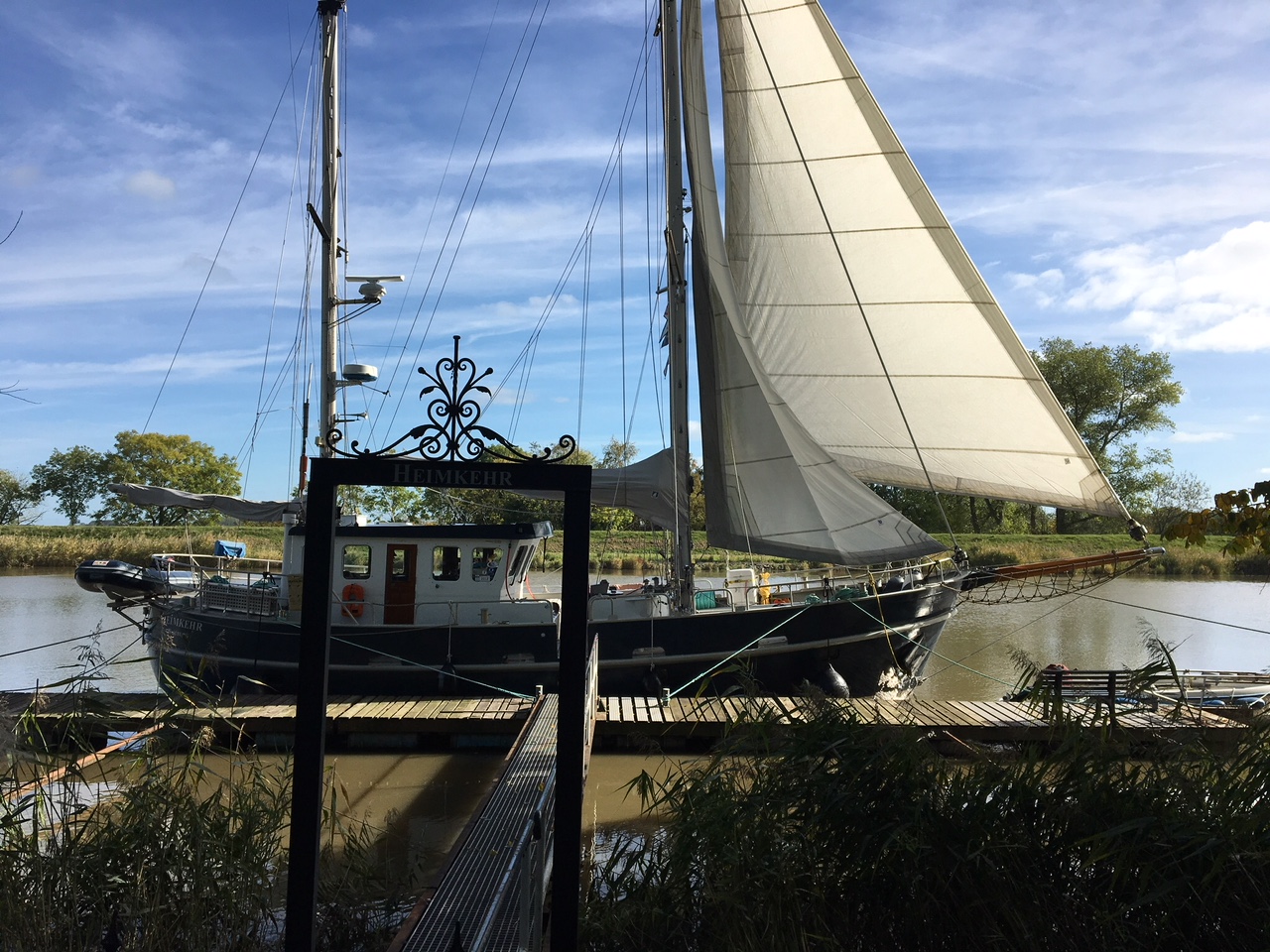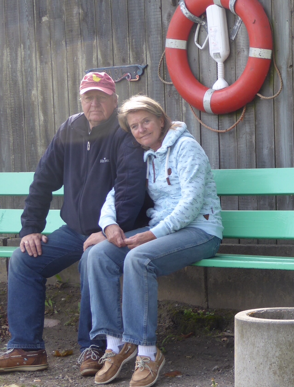 Marstal. Unser Lieblingsplatz, die alte Fischerbank, mit direktem Blick auf die Heimkehr. Morgen wollen wir weiter bis Rendsburg.