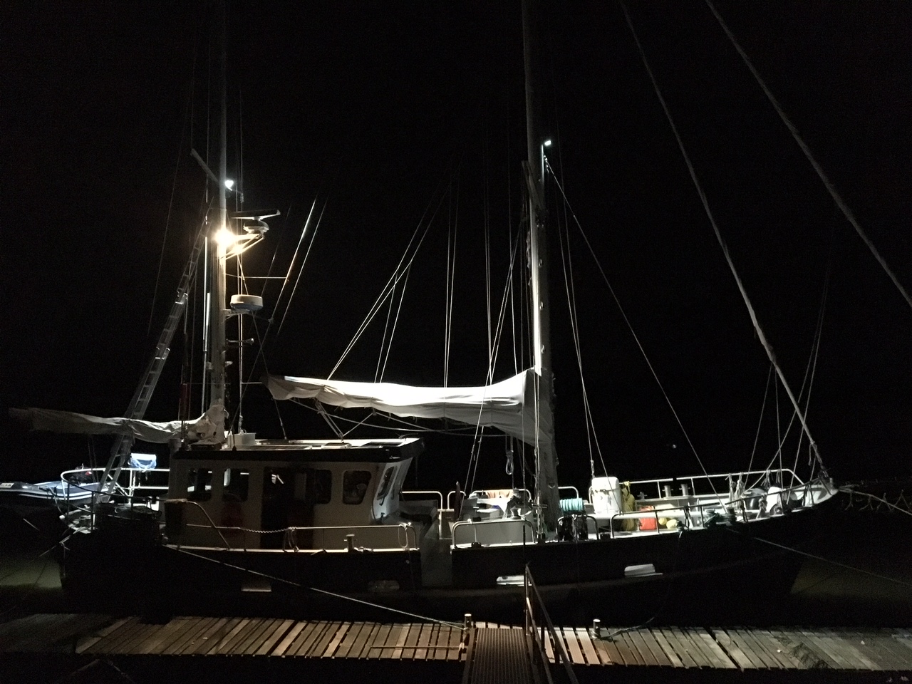 Marstal. Das Weiß strahlt und hinten kommt die blaue Wand. Sah schlimmer aus als das Ergebnis. Trotzdem sieht man solche Wände am liebsten im Hafen. Wir sind auf dem Weg nach Hause. Sea U Bert