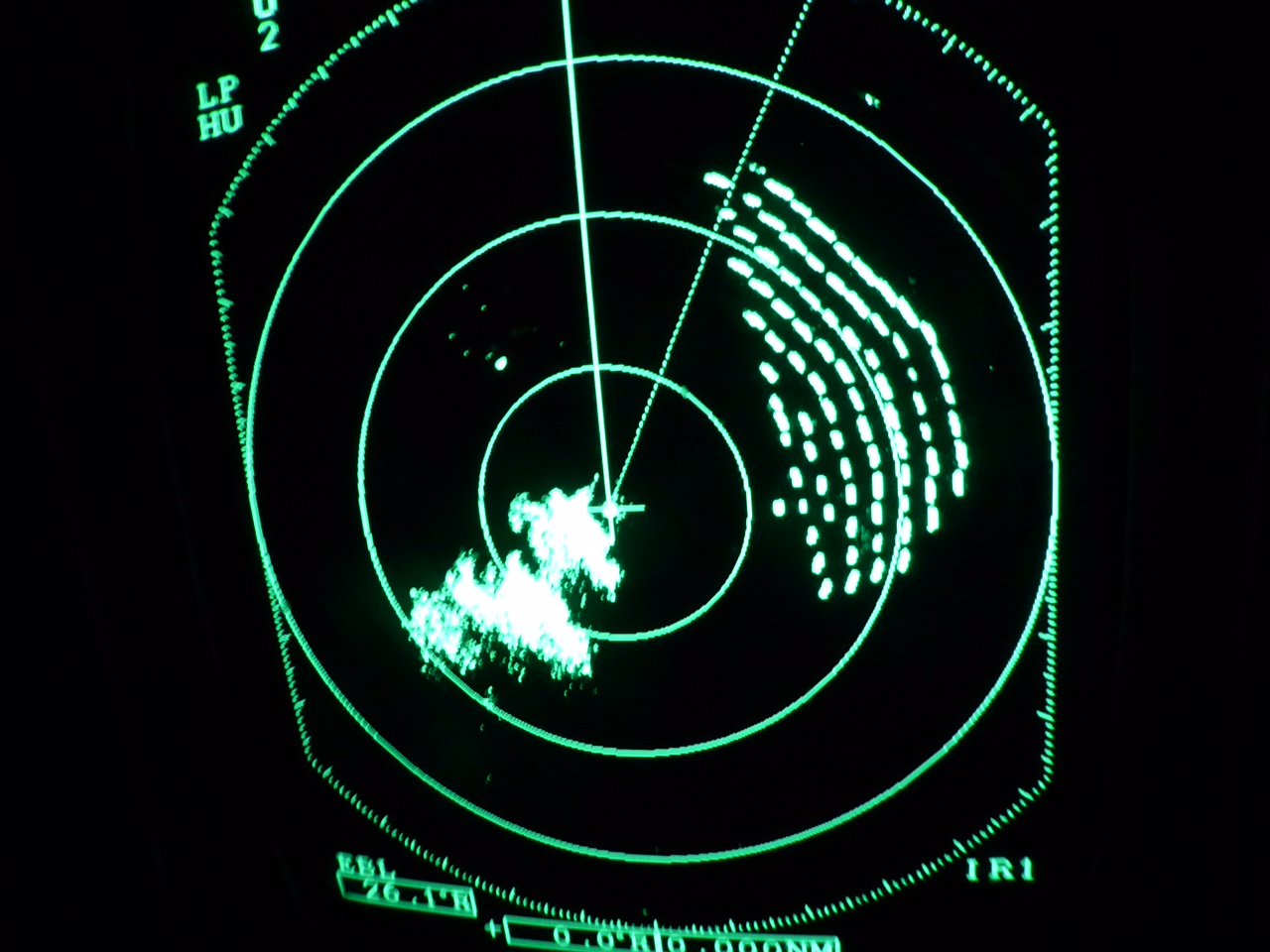 So sieht auf dem Radar eine Windfarm aus, von denen wir heute Nacht diverse gesehen haben. Die sind auch festlich beleuchtet mit roten geblinkel und weißen Blitzen. Weiß Gott nicht zu übersehen. Das Gewusel etwas links unter dem Mittelpunkt ist übrigens ein Gewitter. Sea U Bert