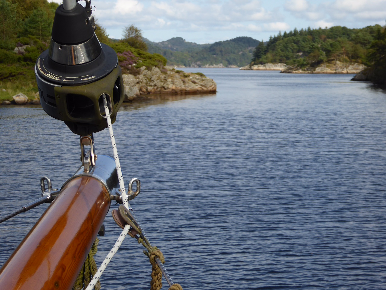 Dicht bei Farsund haben wir einen Lieblingsankerplatz. Er befindet sich in einer kleinen Bucht, die mit wunderschönen kleinen Häusern umstanden ist. Zum ersten Mal haben wir im Juni 2003 mit dieser Heimkehr dort geankert. Einer der Bewohner hat damals die Heimkehr beobachtet und schön gefunden. Seit es AIS gibt, verfolgt er die Heimkehr auf all ihren Wegen über Marine Traffic, stand heute vor dem Schiff und hat uns das erzählt. Endlich, sagt Walter, sieht er die Heimkehr mal aus der Nähe. Wir hatten ein tolles Gespräch, er wartete schon Tage lang auf uns, weil er vermutete, dass wir wieder Farsund anlaufen werden. Wir sind ganz gerührt – what a story.