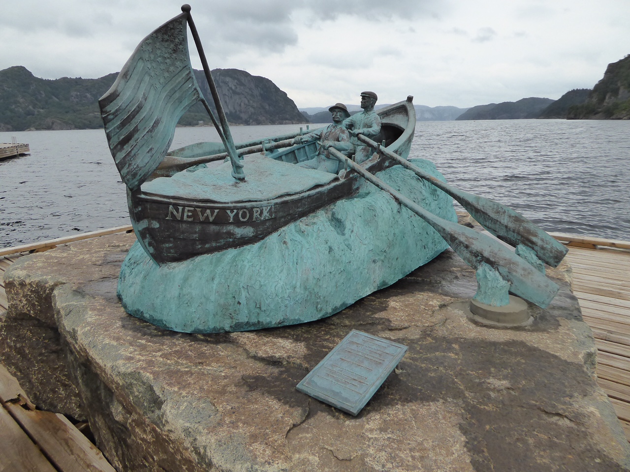 Farsund. Die beiden Jungs hier aus dem Dorf haben schon ein Denkmal verdient finden wir. Sind Sie doch 1896 in 62 Tagen von New York nach Le Havre gerudert. Leni und ich haben 22 Tage über den Atlantik gebraucht. Aber gesegelt, nicht gerudert. Sea U Bert