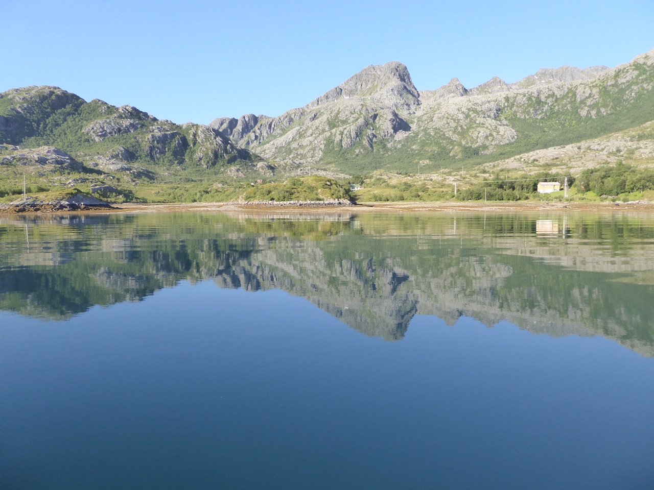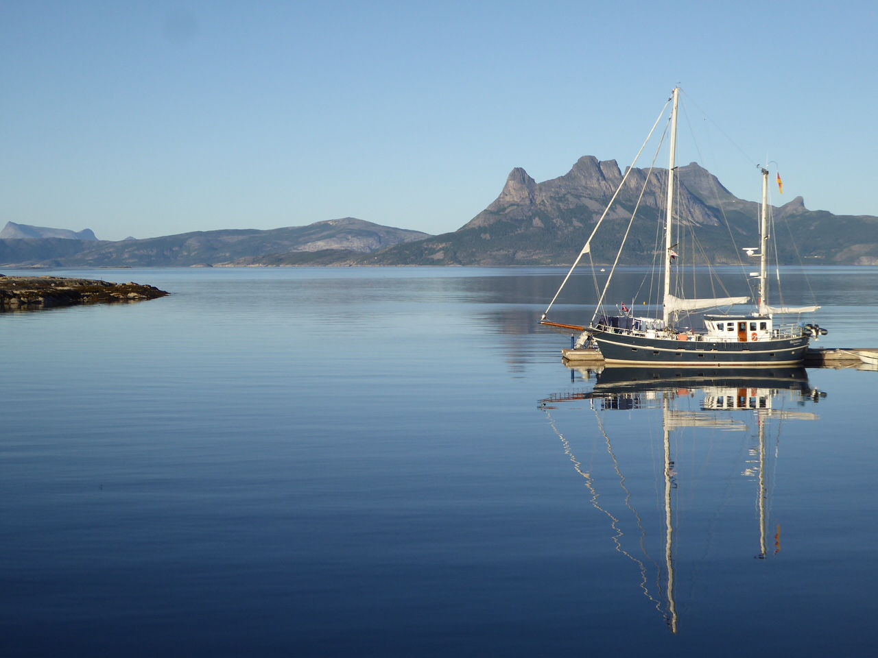 Landegode, Kjelboten. Wieder 25° und keine Wolke am Himmel. So hatten wir uns das hier oben nicht vorgestellt. Aber wir haben natürlich nichts dagegen. Kurz vor Bodø haben wir einen Ankerplatz in einer winzigen Bucht gefunden und wollen nun morgen Früh weiter nach Bodø. Sea U Bert