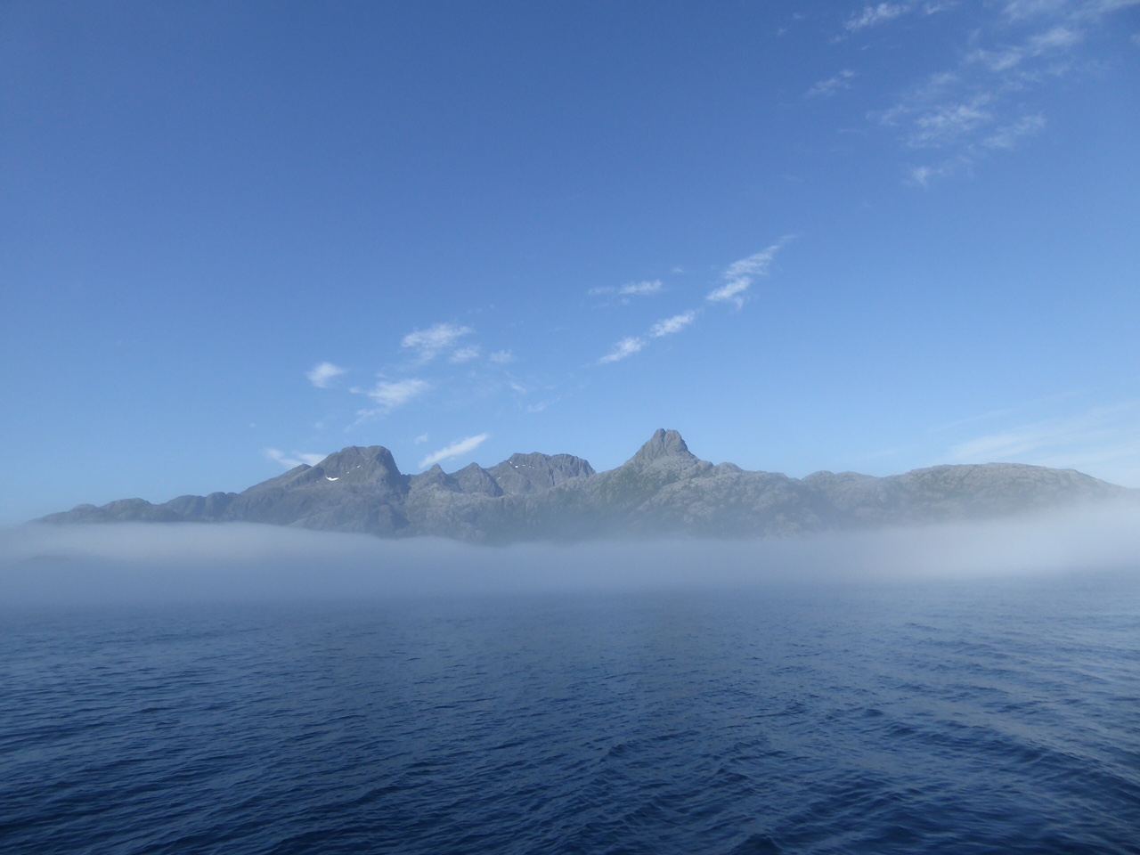 ….dann kam der Nebel. Den haben wir hier zwischen Felsen nicht so gern. Zum Glück blieb er nicht lange. Kurz vor 12 sind wir in Bodø angekommen. Große Stadt, Supermärkte, Kaffetrinken vieeeele Menschen. Morgen wollen wir in den Holandsfjord zum Svartisen Gletscher. Sind etwa 60 Meilen bis dahin. Sea U Bert