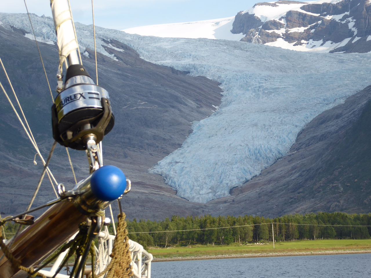 Svartisen. Der zweitgrößte Gletscher Norwegens hat bis zu hundert Meter dickes Eis, ist bis 1599m hoch und hat eine Ausdehnung von 370 Quadratkilometern. Wir liegen direkt davor und sind beeindruckt. Jeder Norweger muss einmal in seinem Leben einen Gletscher berührt haben, sagt man hier. Wir probieren das morgen. Sea U Bert