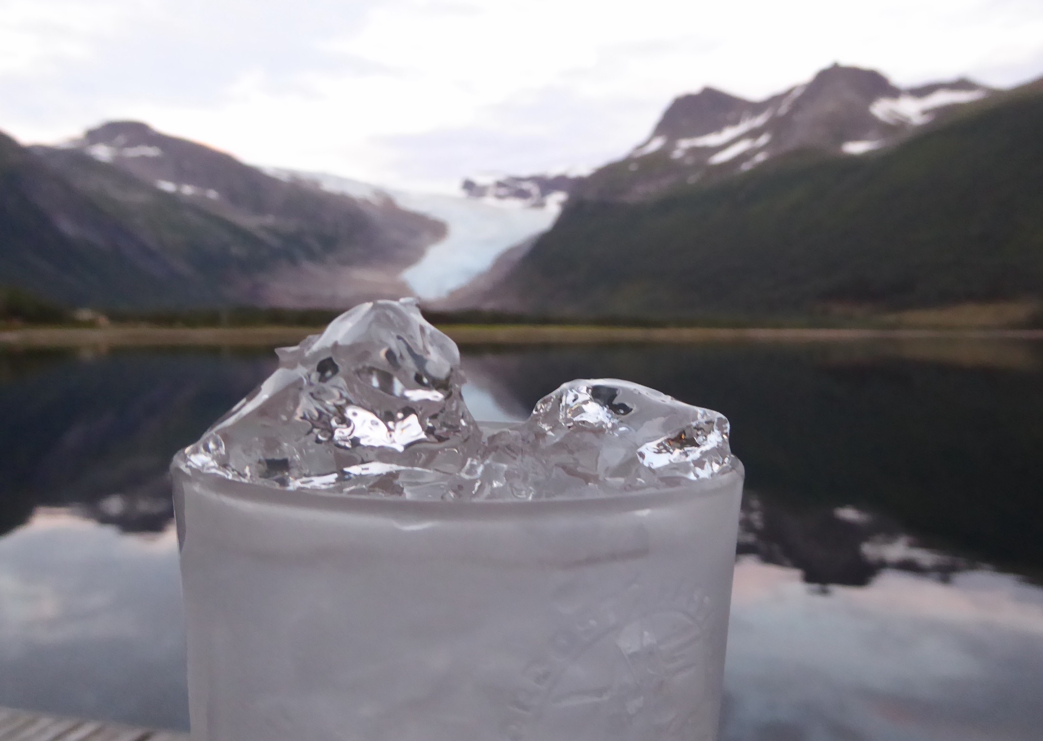 Svartisen. Ja, Leni ist da rauf und unter dem Gletscher rumgekrabbelt. Der wahre Grund für ihre Heldentat war natürlich Eis zu holen für einen Gin Tonic mit 1000 Jahre altem Eis. Also hat sie eine Box voll abgehackt. Dieser Verlust wird nicht auf Klimawandel gebucht. Morgen geht’s weiter nach Süden. Sea U Bert