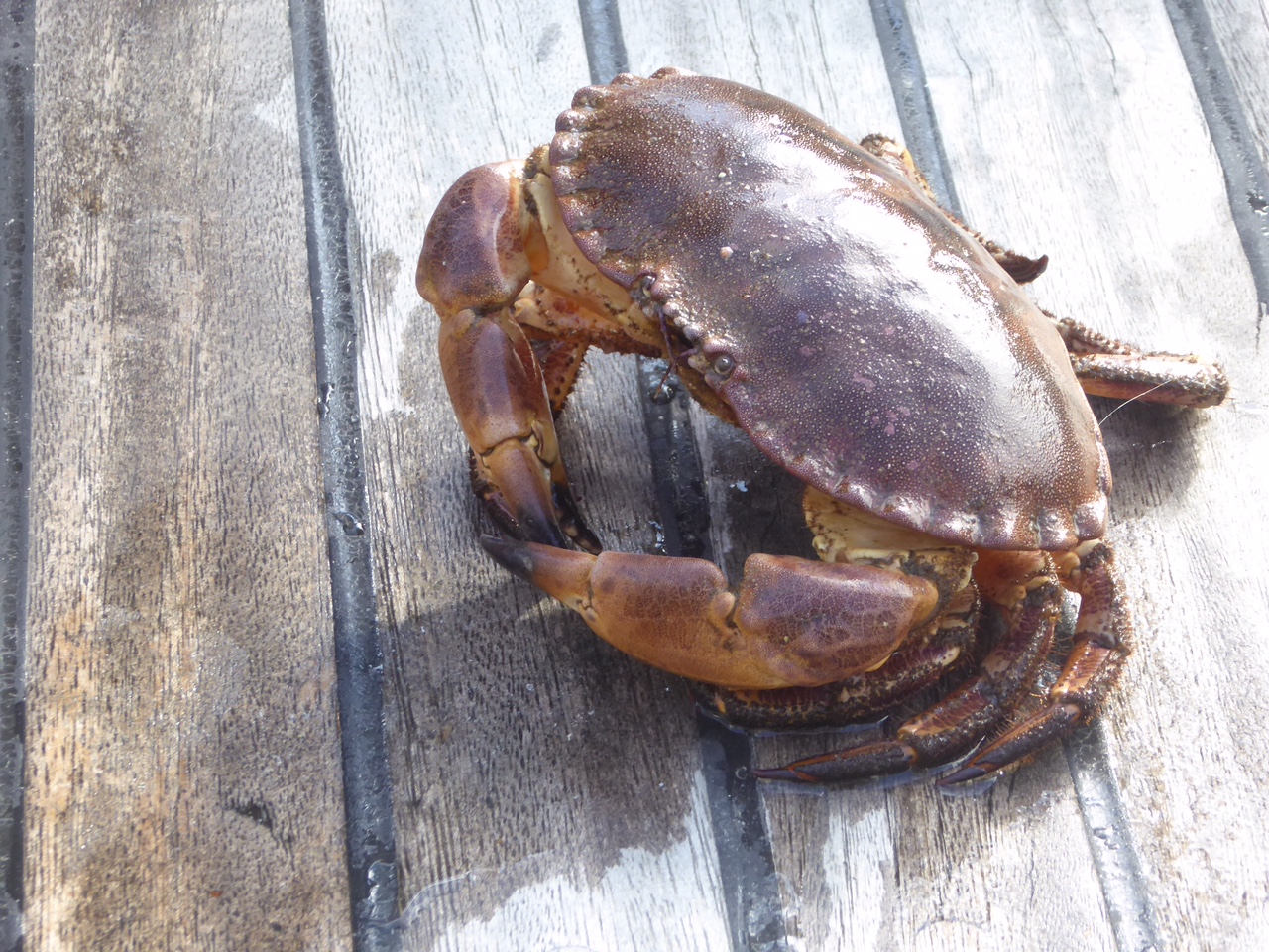 Haben heute unsere Krabbenfalle ausprobiert. Treffer. Dieser Taschenkrebs hat den Tag aber überlebt. Sea U Bert