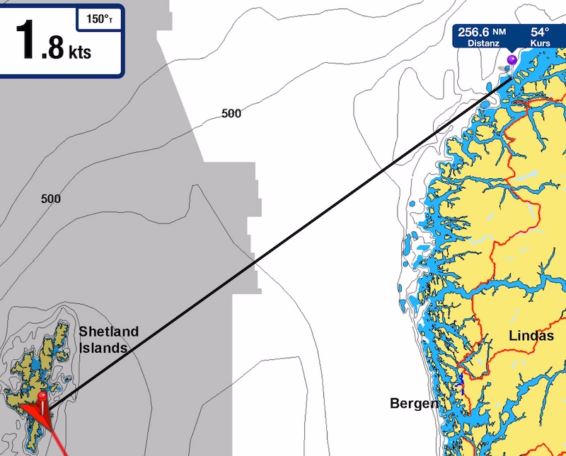 Lerwick. Der Start der großen Bergen-Shetland (und zurück) Regatta fand heute noch bei Böen 9 statt.So etwas machen wir nicht. Montag Abend soll der Wind ziemlich weit runter sein, die See bis auf 2,5 m.. Zur Zeit ist sie noch 4 Meter. Bis kurz vor Bergen sind es 180 Meilen. Da der Wind ab Mittwoch auf östluche Richtungen drehen will, wollen wir es vorher schaffen. Wahrscheinlich auch mit Maschinenhilfe. Je nach Wind laufen wir so nördlich wie möglich. Nach Bergen wollen wir erstmal nicht. Drückt uns bitte die Daumen, dass das Wetter so kommt und wir da flott rüberkommen. Sea U Bert