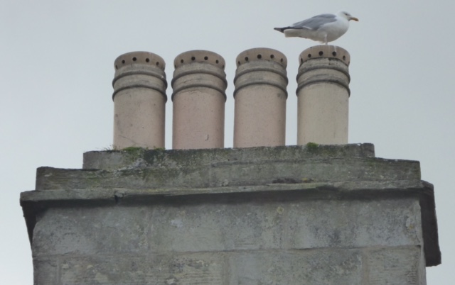 Lerwick. Im Winter ist s hier natürlich auch den Möwen zu kalt. Deshalb haben die Schotten diese Möwenheizungen auf dem Dach.