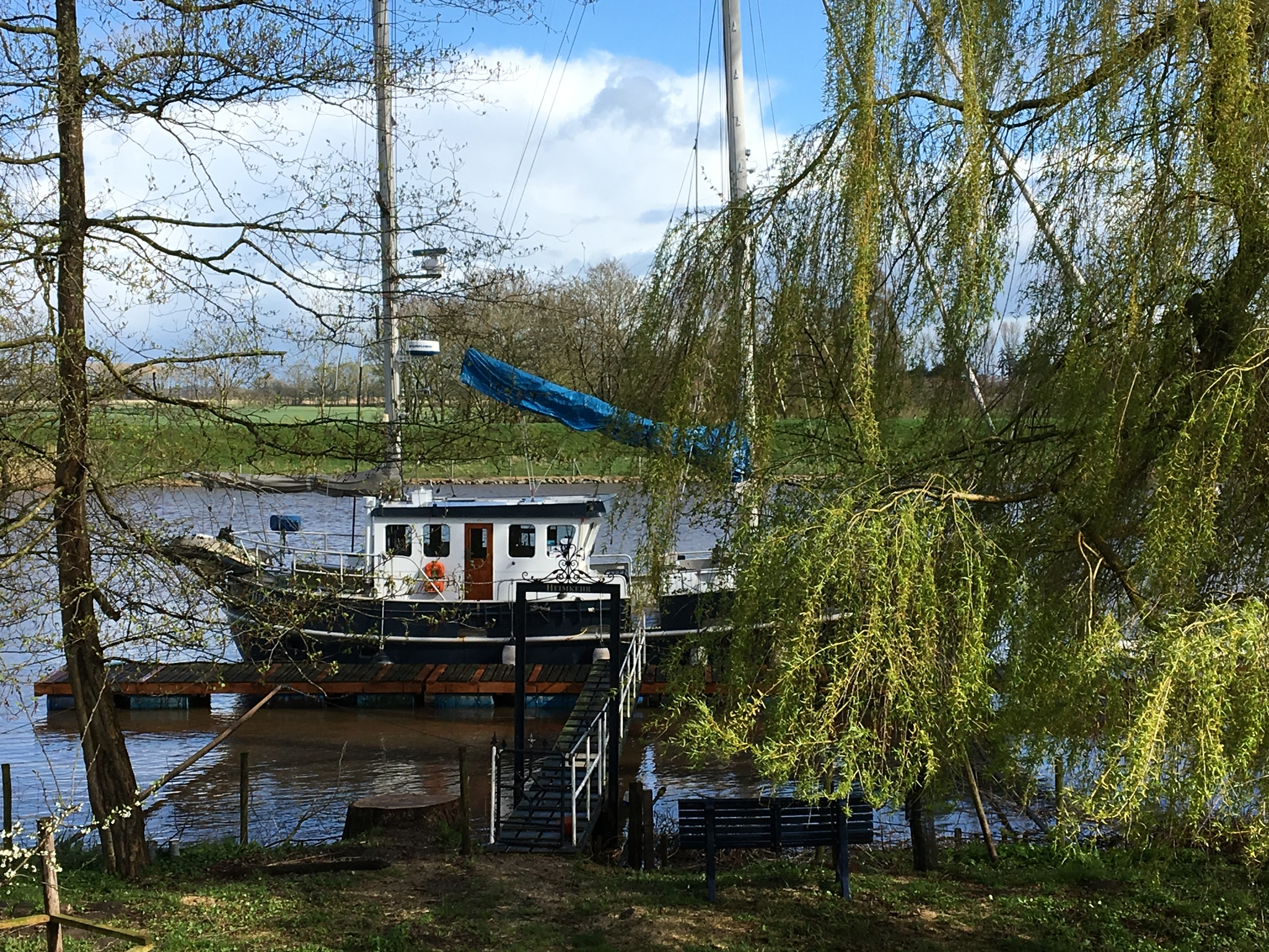 ..Oberndorf. Heute Punkt 11 Uhr haben Jörn und Dirk unsere letzten Leinen losgemacht. Mit über 50 Freunden hatten wir ein leckeres Farewellfrühstück auf dem Ostekieker, der schwimmenden Kultkneipe auf der Oste.