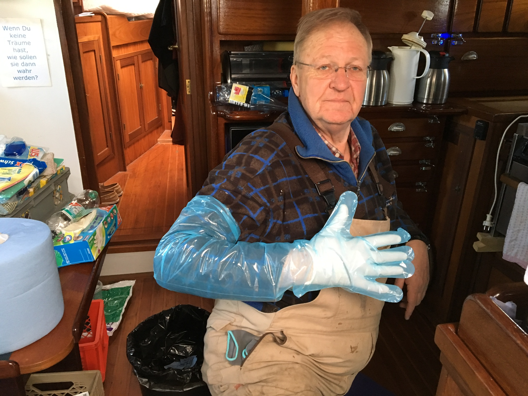 Oberndorf. Wir reinigen die Dieseltanks. Kleiderordnung: Sehr lange, elegante Handschuhe. Die braucht der Bauer, wenn die Kuh kalbt. Sea U Bert
