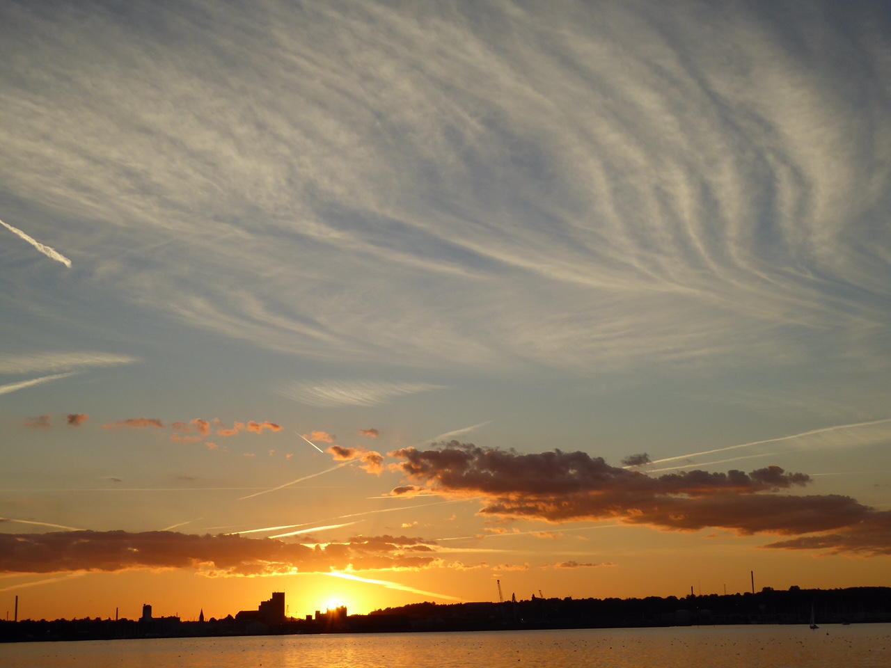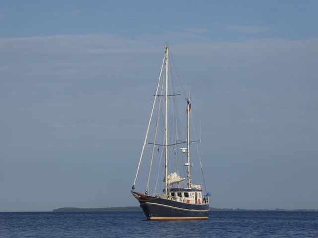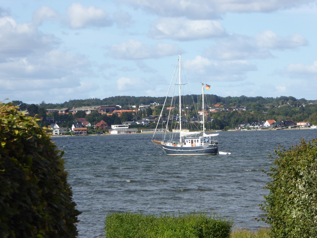 Wie sie da so liegt! Vor Anker bei Æbelø. Wieder traumhaftes Wetter, 3 x gebadet. Noch ein Hüpfer nach Kolding, dann nach Hamburg zum Zahnarzt. Sea U Bert