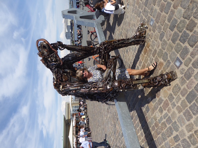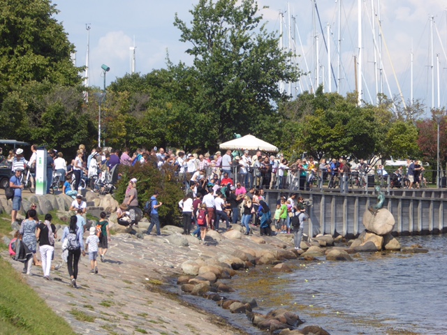 Ein 13 km langer Fahrradweg führt uns am inneren Hafen Kopenhagens entlang. Größer können die Kontraste nicht sein, die wir unterwegs entdecken: Hausboot-Idylle, moderne Gebäude wie der “Black Diamond” (Bücherei und Konzerthalle), Ballettaufführung im Freien. Wir sind begeistert von der Stadt, allerdings war es uns in der City heute doch zu voll. Und den Cappuccino trinken wir lieber im Café ‘Heimkehr’, im Café Norden kostet er 7 Euro (einer)!