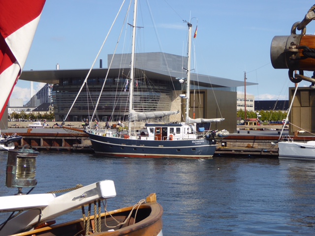 Das Opernhaus von Kopenhagen war ein Geschenk der Inhaber der Maersk Reederei an den dänischen Staat. Es hat die modernste Bühne Europas in sich und war trotzdem nach 3,5 Jahren fertig. HEIMKEHR liegt gleich gegenüber. Die Danebrog, die königlich-dänische Yacht, liegt in der Einfahrt. Ein wahres Schmuckstück. Danebrog ist der Name der dänischen Flagge.
