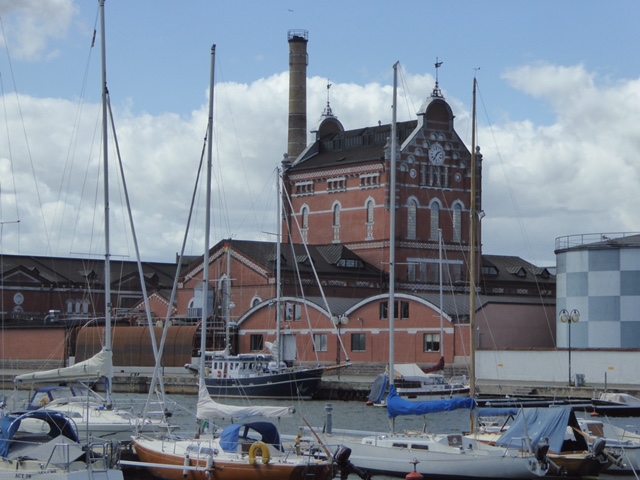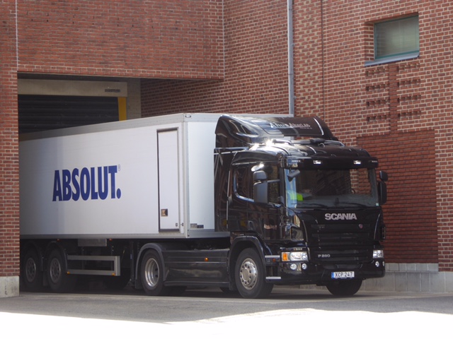 Ã…hus, Schweden. Für manch einen wird das ja eine Traumvorstellung sein. Die Heimkehr liegt unmittelbar vor einer der größten Wodka-Destillen der Welt. Absolut. Das Gebäude neben uns hat der Flasche die Form gegeben. Es ist die zweitbekannteste Flasche in der Welt, nach Coca-Cola. Andy Warhol hat sie in das Museum of Modern Art in New York getragen. In dem 1904 gebauten Gebäude werden täglich 700.000 Flaschen Absolut.Wodka abgefüllt. Ständig fahren beladene LKWs aus dem Werk in den Hafen. Das Karierte direkt neben HEIMKEHR sind die großen Tanks, jeweils randvoll mit feinstem Wodka. Da fängt schon manch einer zu träumen an. Sea U Bert