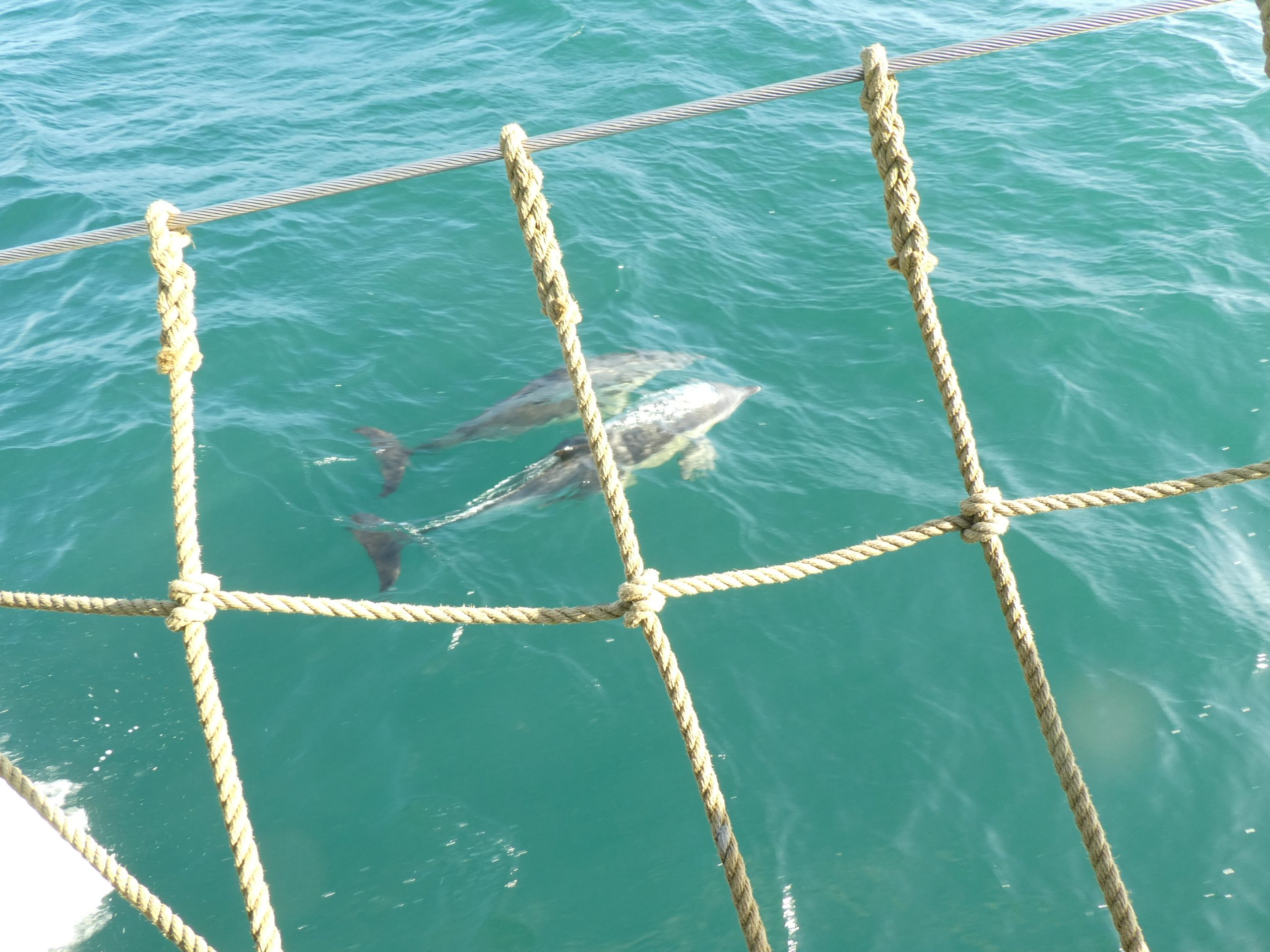 Die größte Belohnung heute: wir haben 8 – 10 Delphine vorm Bug, die uns über 30 Minuten nach Osten begleiten. Wir können uns nicht sattsehen und sind überglücklich, diese wunderbaren Tiere so lange zu beobachten.