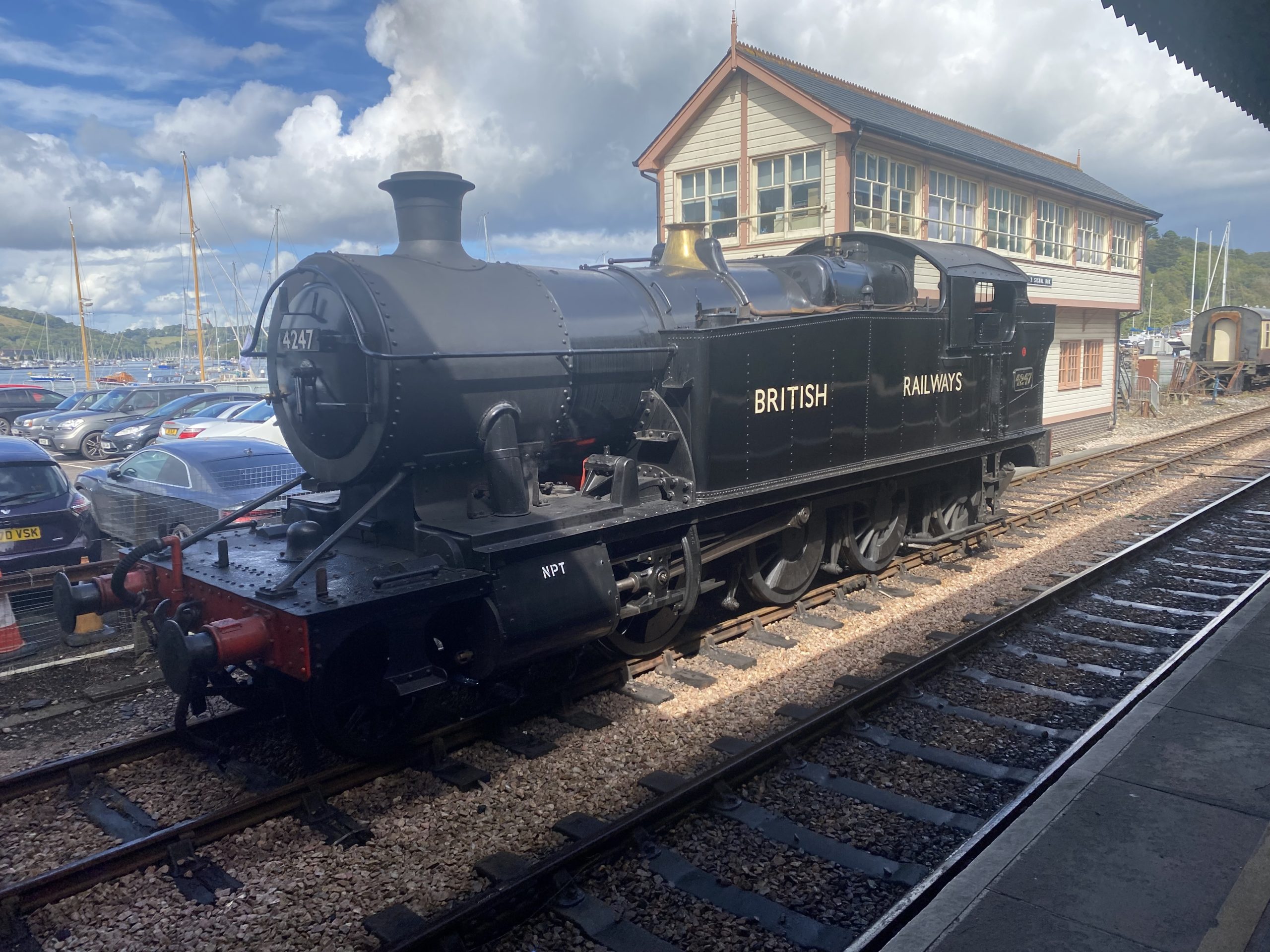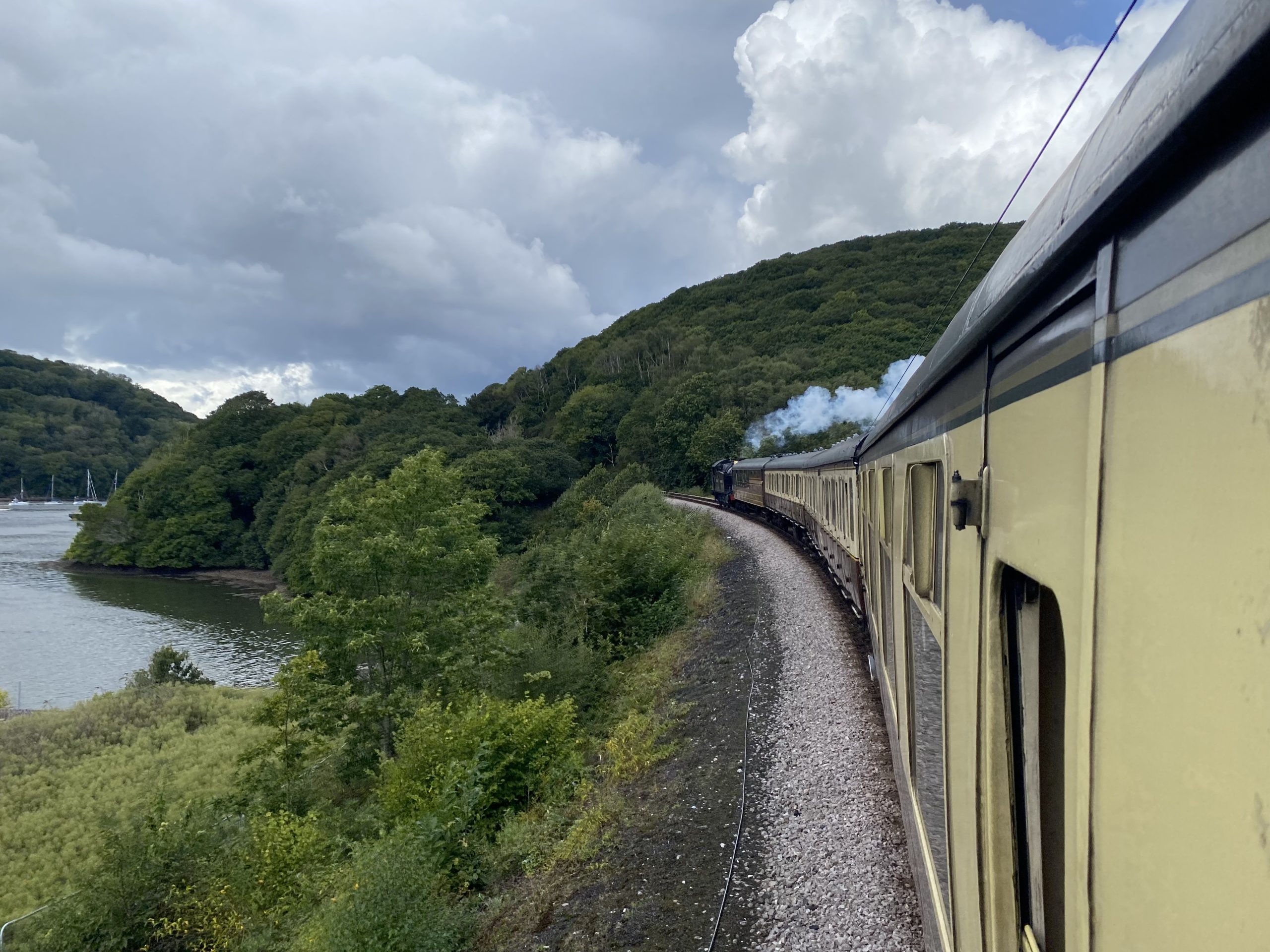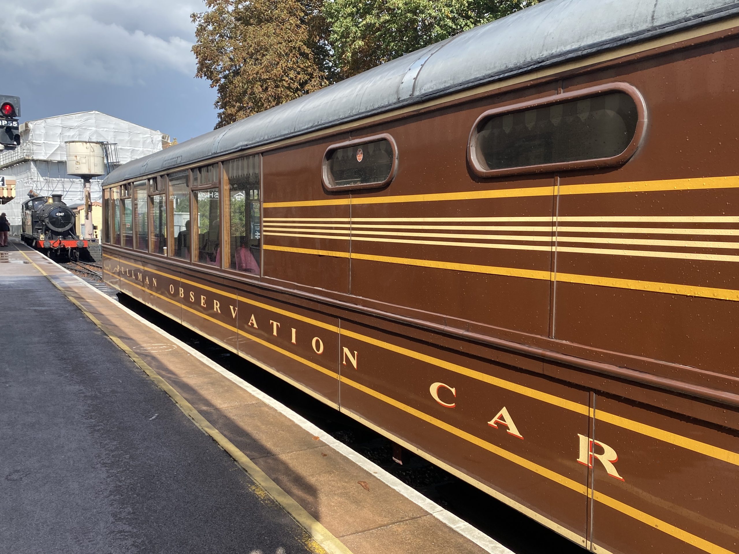 Auf der anderen Seite in Kingswear ist die Haltestelle der Dartmouth Steam Railway. Die alte Dampflok fährt am Hafen vorbei, pustet tüchtig Dampf in die Luft und pfeift ordentlich. Das ist für uns die Einladung für eine tolle Fahrt mit der Dartmouth Steam Railway. Wir entern den Pullman Observation Car ‘The Devon Belle’, einer der letzten beiden noch existierenden Eisenbahnwaggons dieser Art, gebaut 1917. Die kleine Reise geht von Kingswear nach Paignton und zurück. Ein tolles Erlebnis.
