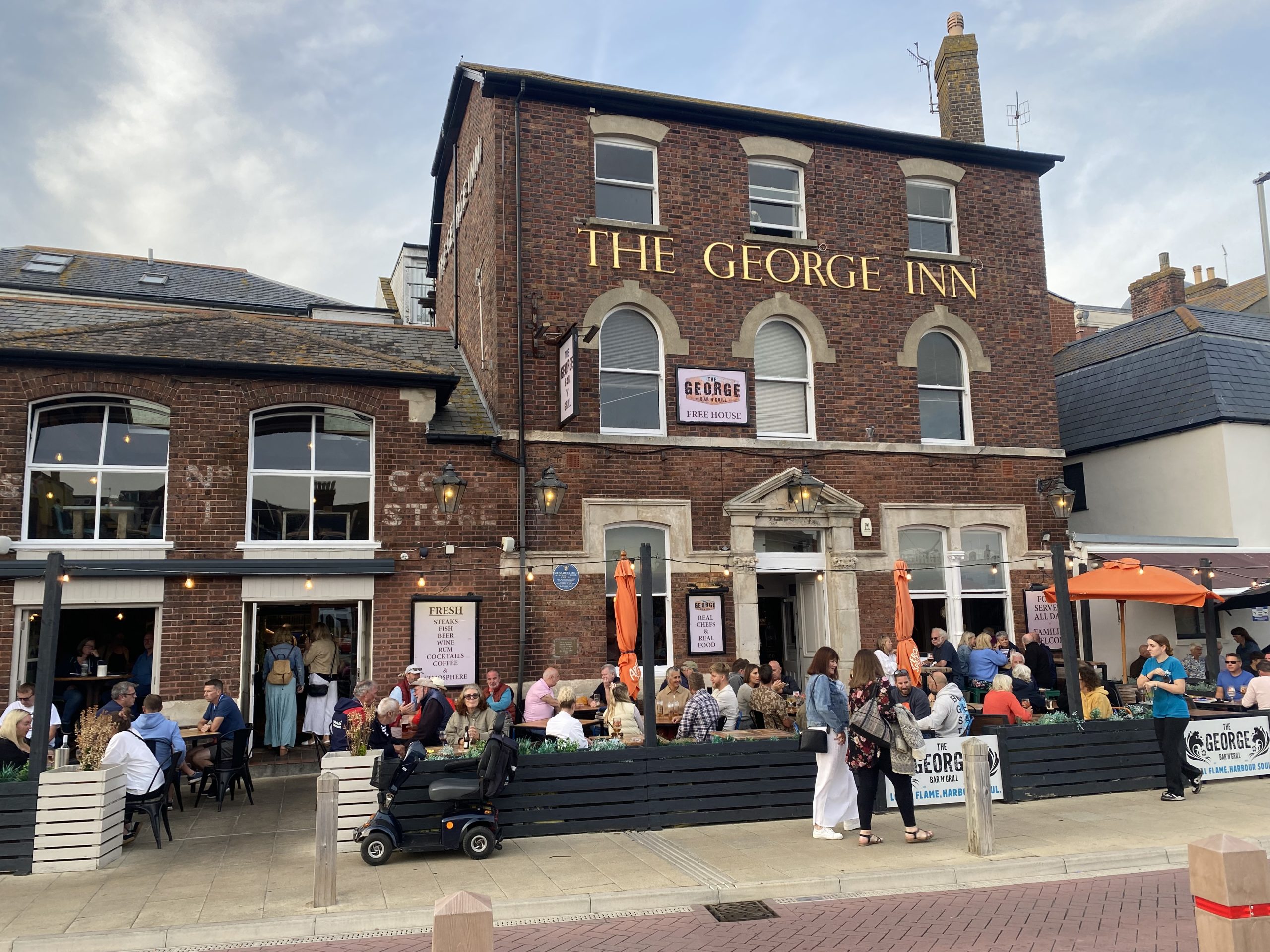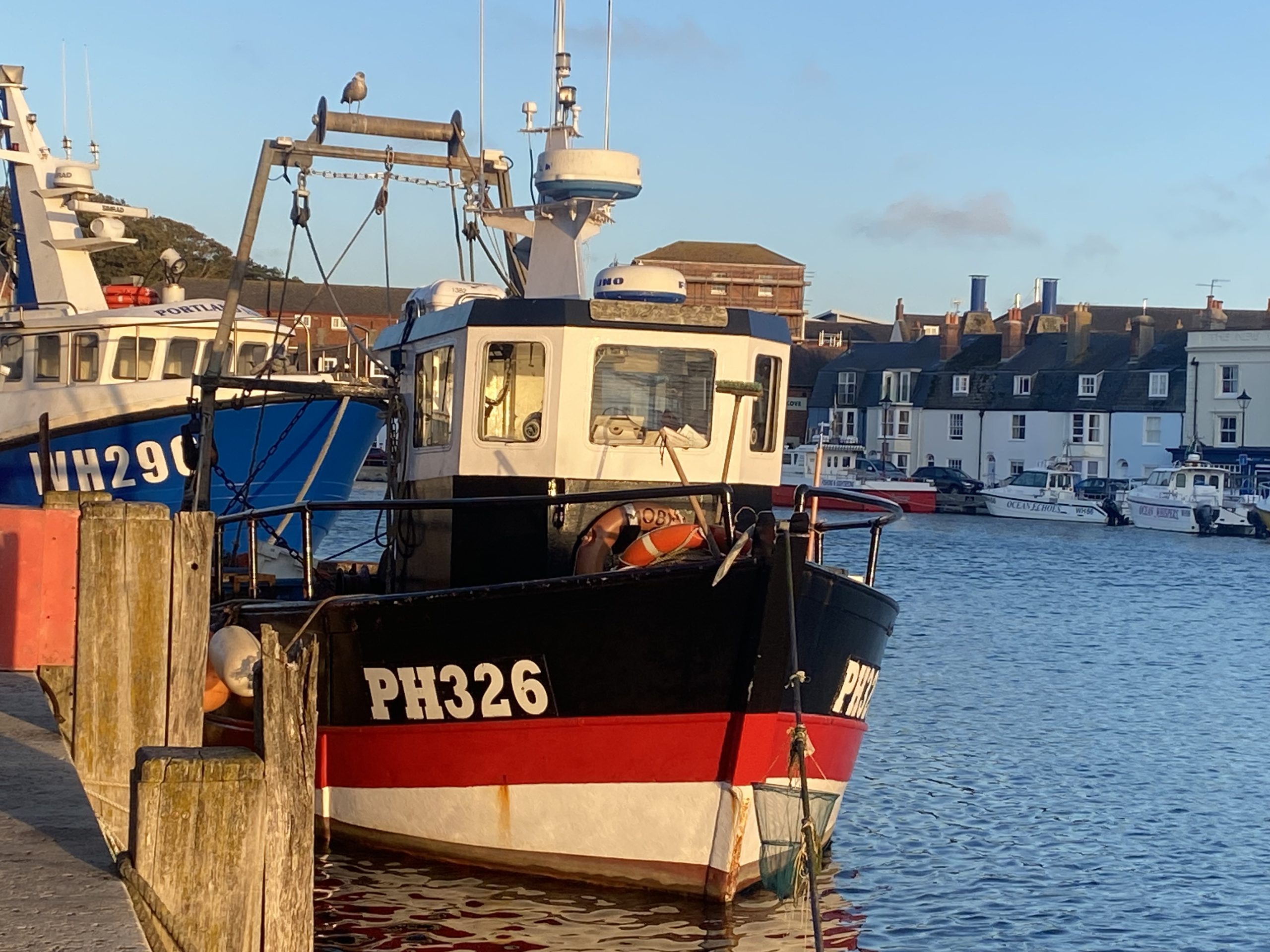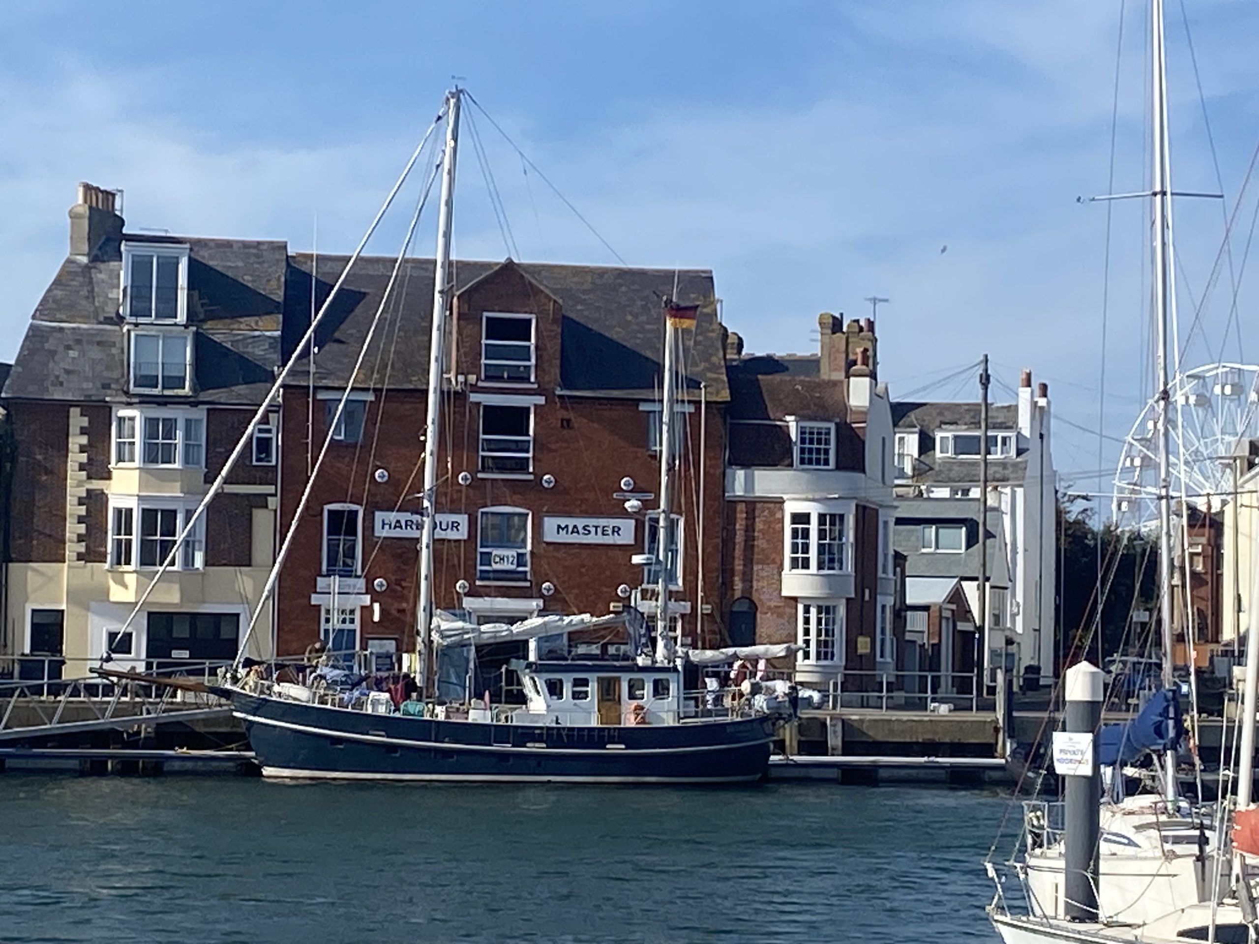 Wir haben einen Platz im Hafen von Weymouth reserviert und liegen mitten in der Stadt. Der erste Eindruck ist klasse: lebhaft, Fischkutter, Livemusik auf der Straße, tolle Restaurants.