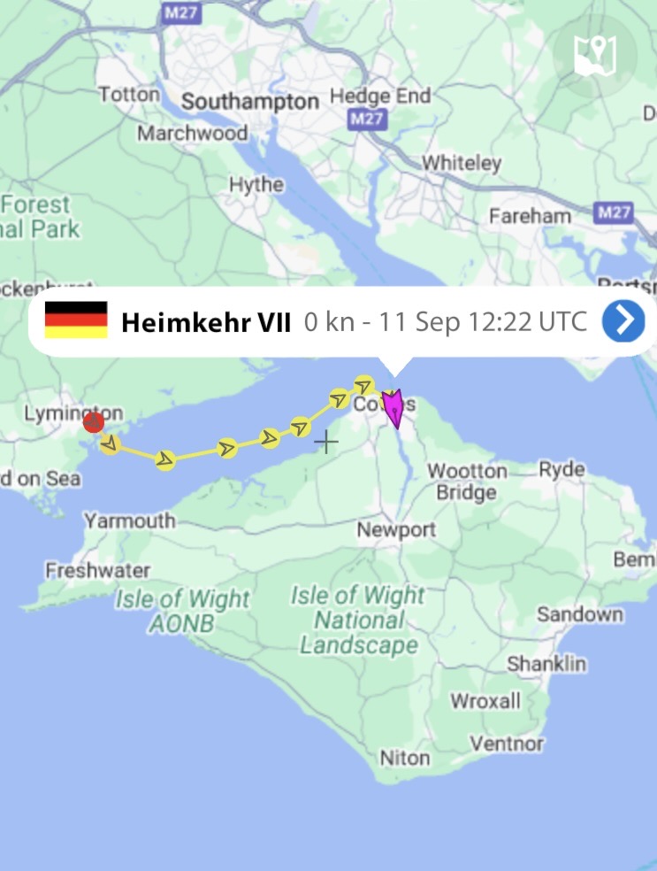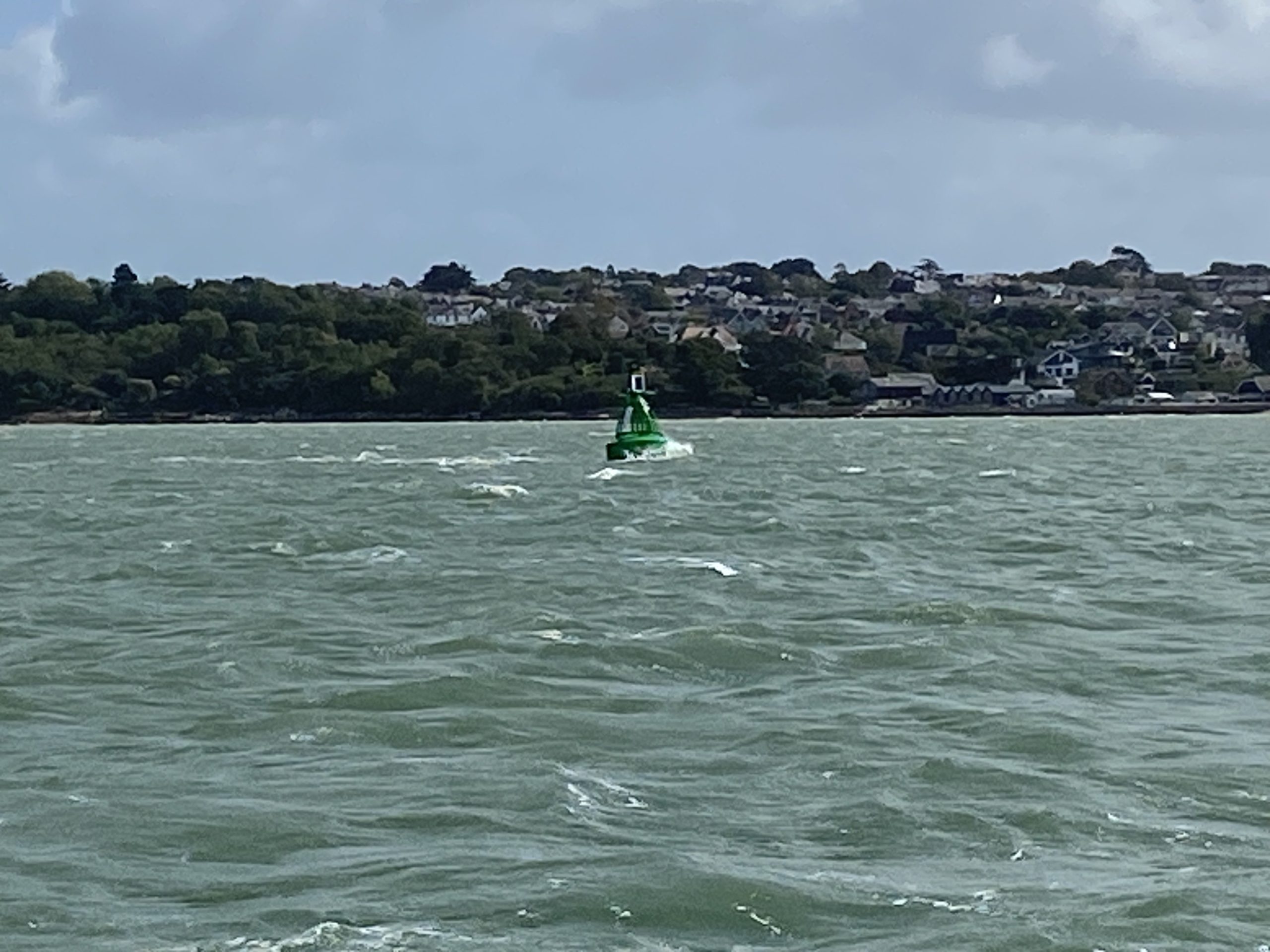 Die Isle of Wight ist schon zu sehen. Diese Engstelle hat enormen Tidenstrom, hier kocht die See. Heimkehr wird zum Racer mit einer Geschwindigkeit von bis zu 11,7 Knoten. Hier muss man zur richtigen Zeit sein, sonst wird’s ärgerlich.