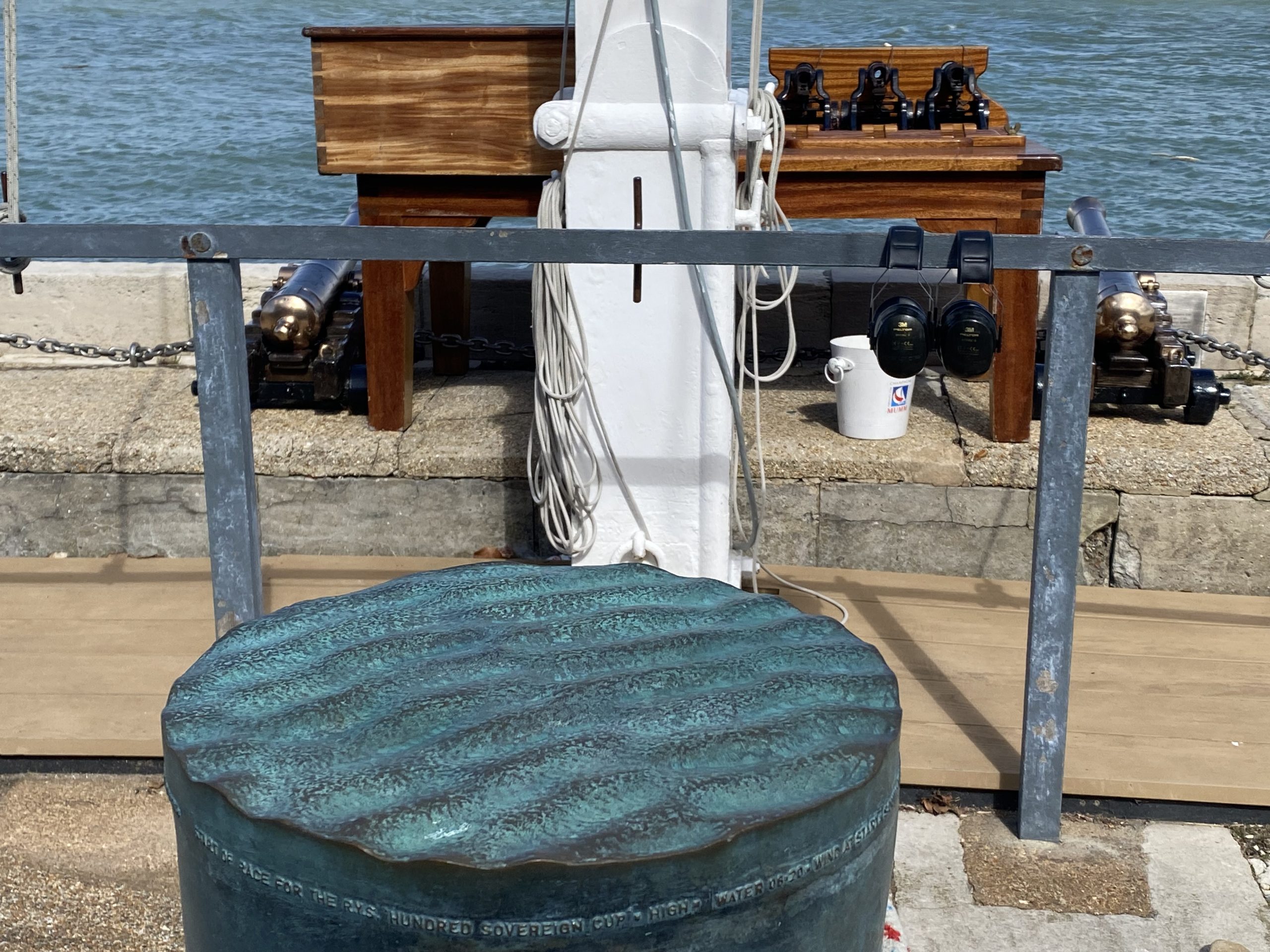 Mit der Kettenfähre, der Floating Bridge, fahren wir über den Medina River nach East-Cowes. Hier ist es auch prima. Leider war das Osborne House, Landsitz von Königin Victoria und Ehemann Albert, wegen Sturm geschlossen. Dafür gab es dann ein leckeres Toastie-Sandwich bei Betty’s. Vor dem Classic Boat Museum (auch geschlossen) in den alten Hallen unter dem großen Hammerhead Crane von 1912 liegt der America’s Cup Racer Britannia.