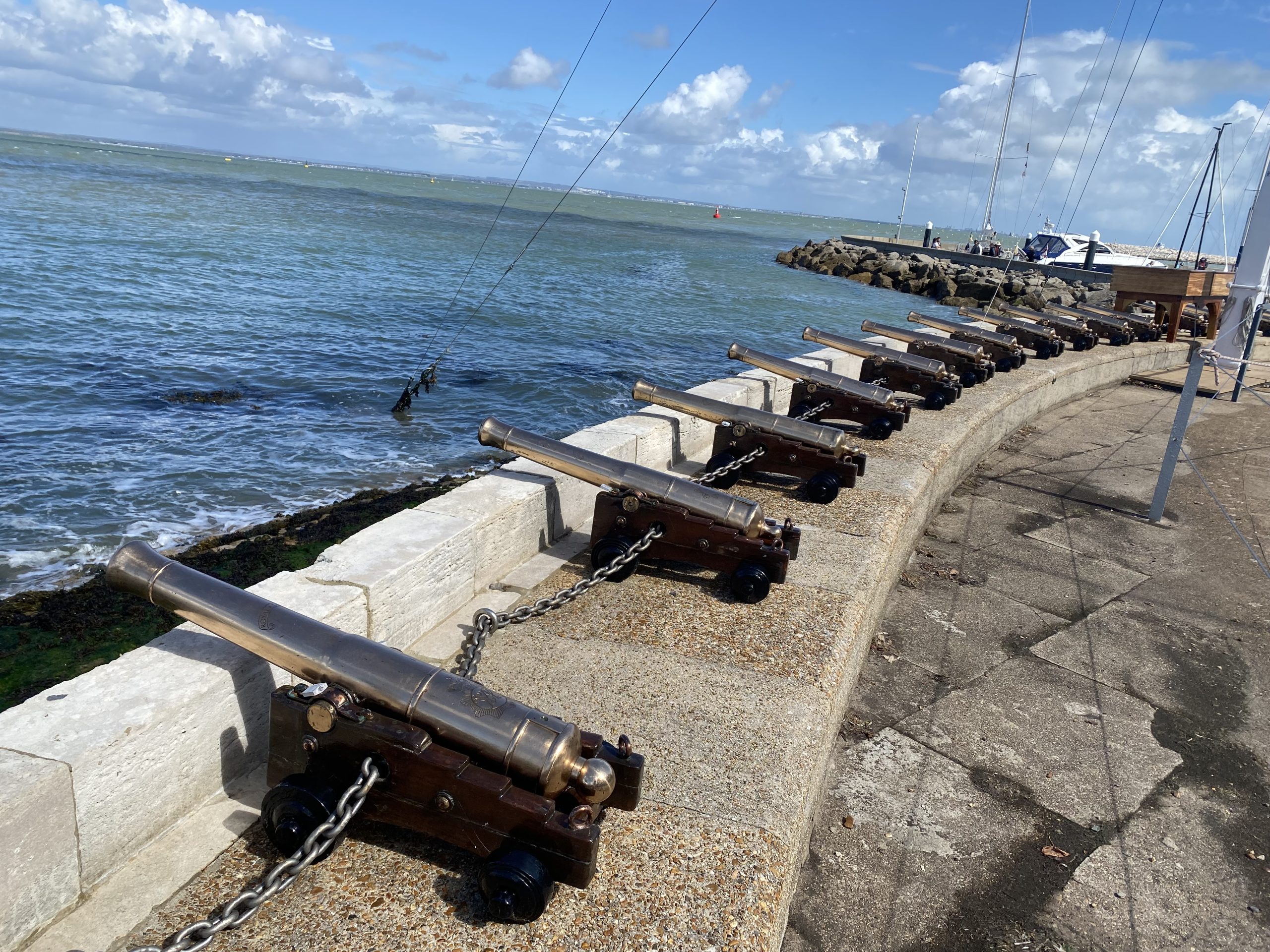 Fein geputzt die Kanonen vorm Royal Yacht Squadron im Cowes Castle. Der RYS wurde 1815 gegründet und gilt als der altehrwürdigste Yachtclub Großbritanniens.