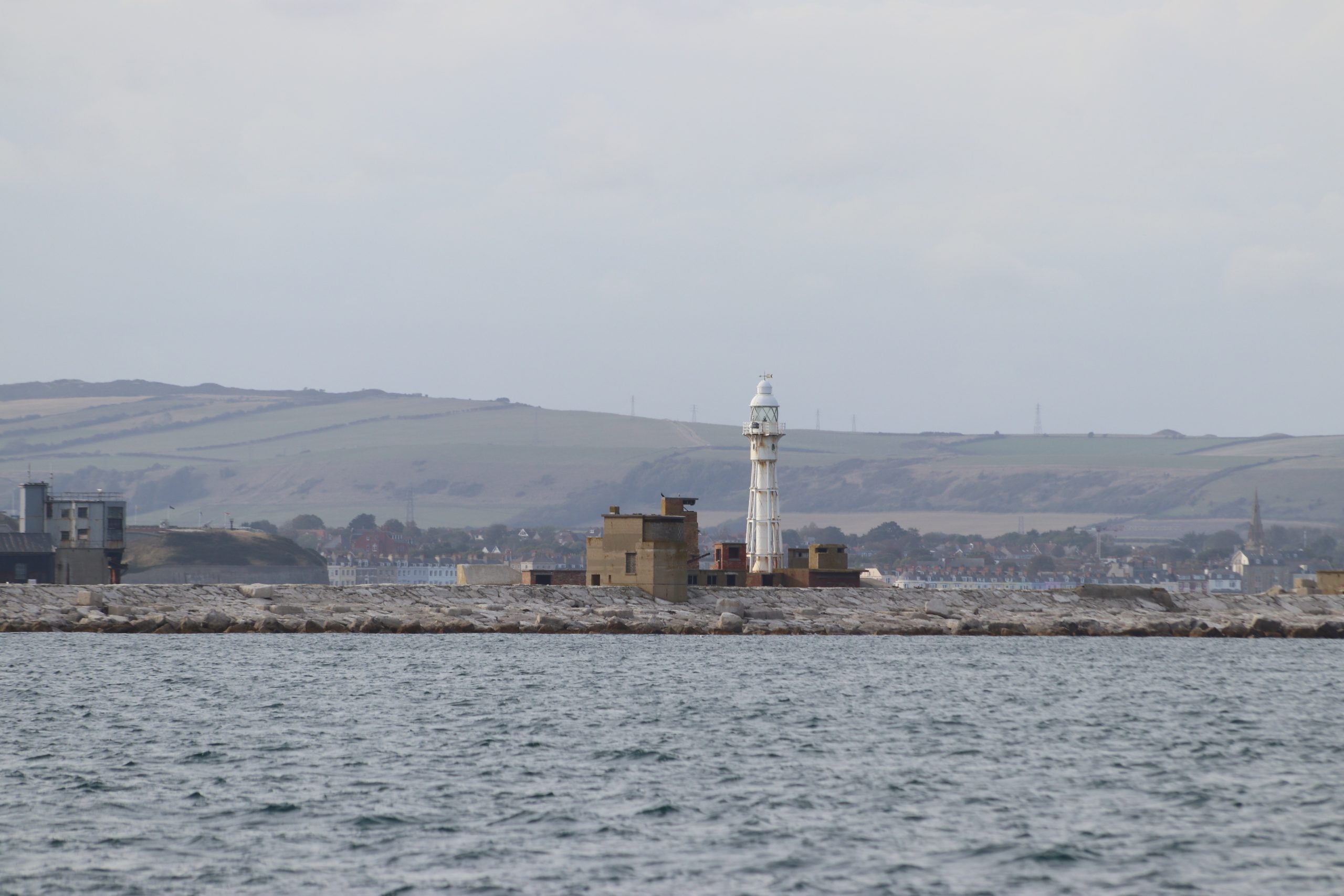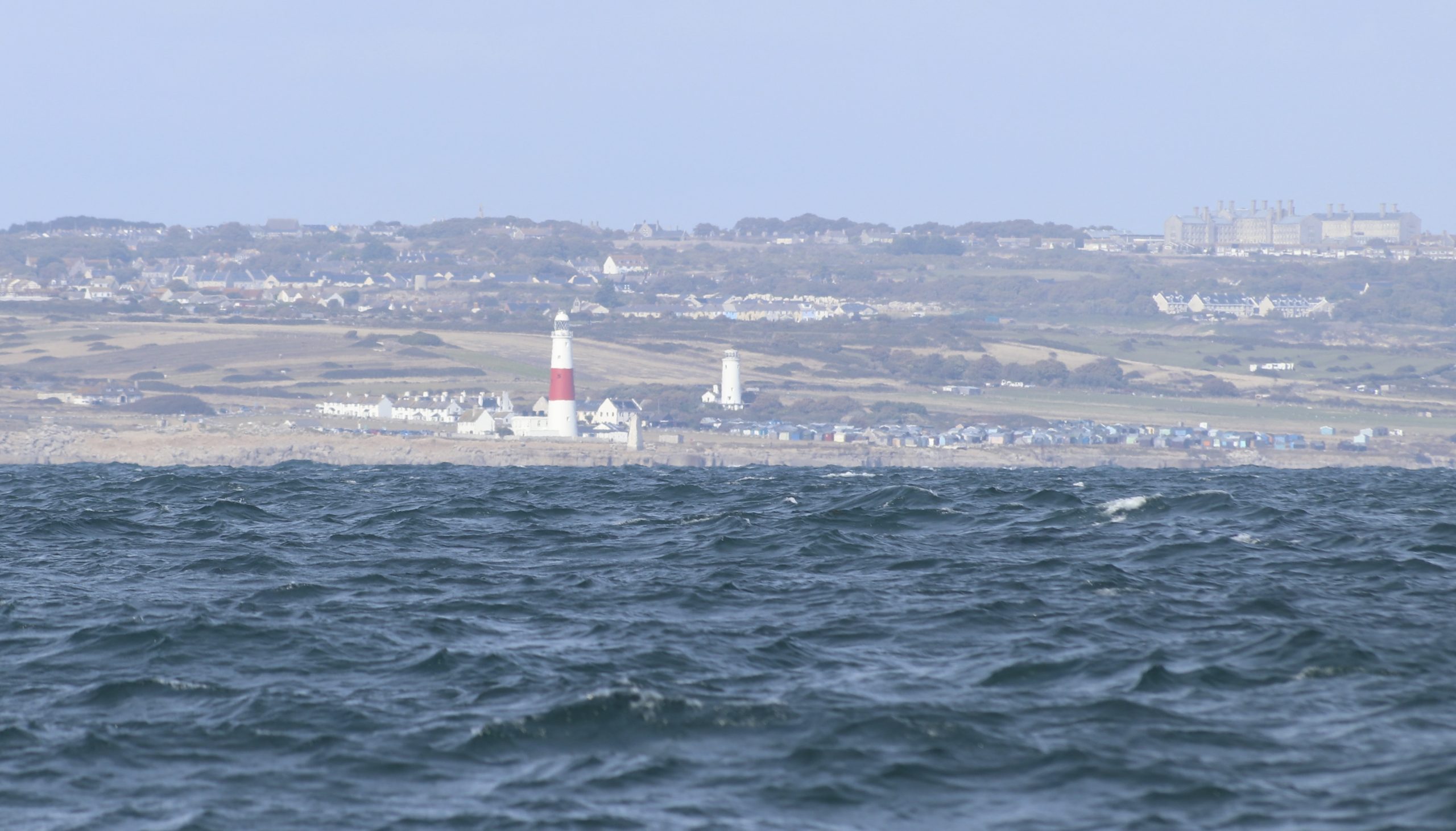 Die Tidenrechnung war heute nicht so einfach. Entscheidend für unsere Planung war die Tide am berüchtigten Portland Bill. Hier können durch bis zu 8 Knoten herrschenden Tidenstrom gefährliche brechende Seen entstehen. Das wollen wir nicht erleben. Uns bremsen zeitweise 0,5 Knoten Gegenstrom, aber dadurch passt der Zeitplan. Wir halten 3 Seemeilen Abstand zur Küste, so liegen die Races Backbord von unserem Kurs. Portland Race ist das gefährlichste Seegebiet im Englischen Kanal. Wir sind zur richtigen Zeit am Portland Bill und werden dann mit bis zu 8 Knoten Geschwindigkeit vorbei am Portland Harbour Richtung Weymouth geschoben.