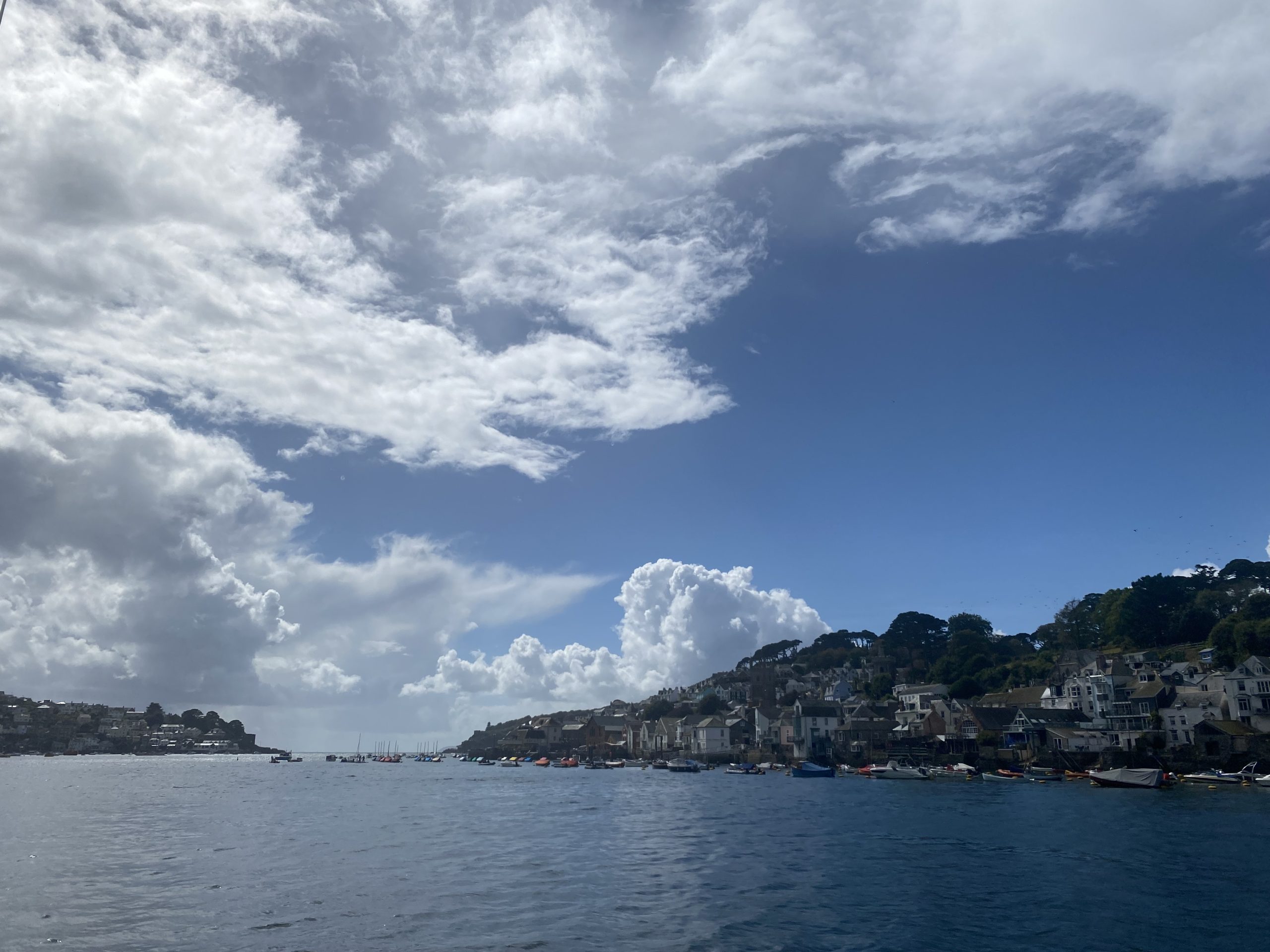 Nach 27 Seemeilen laufen wir ein nach Fowey, eine Kleinstadt an der Küste Cornwalls mit ca. 2300 Einwohnern. Wir können an einer großen Mooringboje festmachen und genießen erstmal den Anblick der Stadt, die sich am steilen Hang verteilt. Zu schön, wieder hier zu sein.
