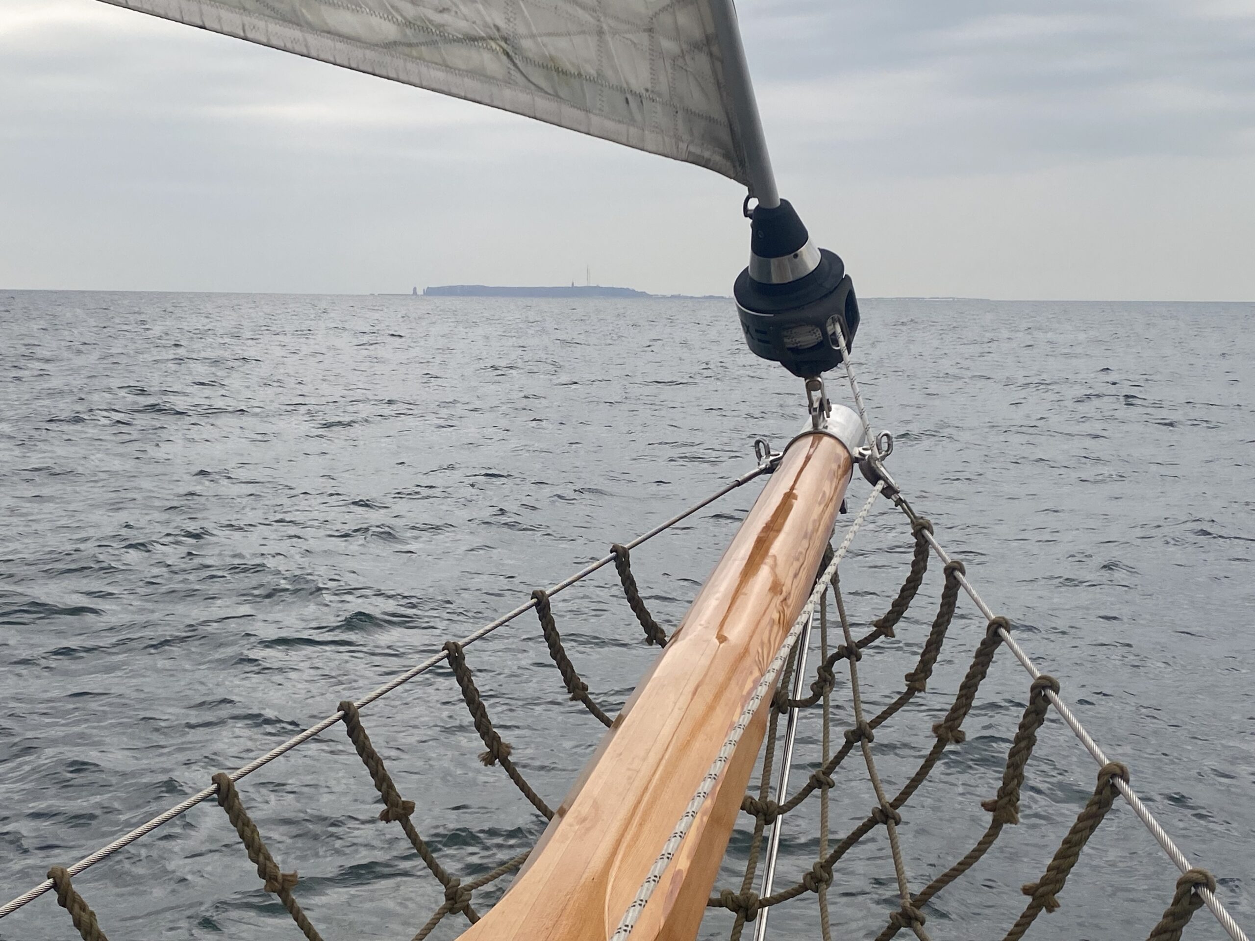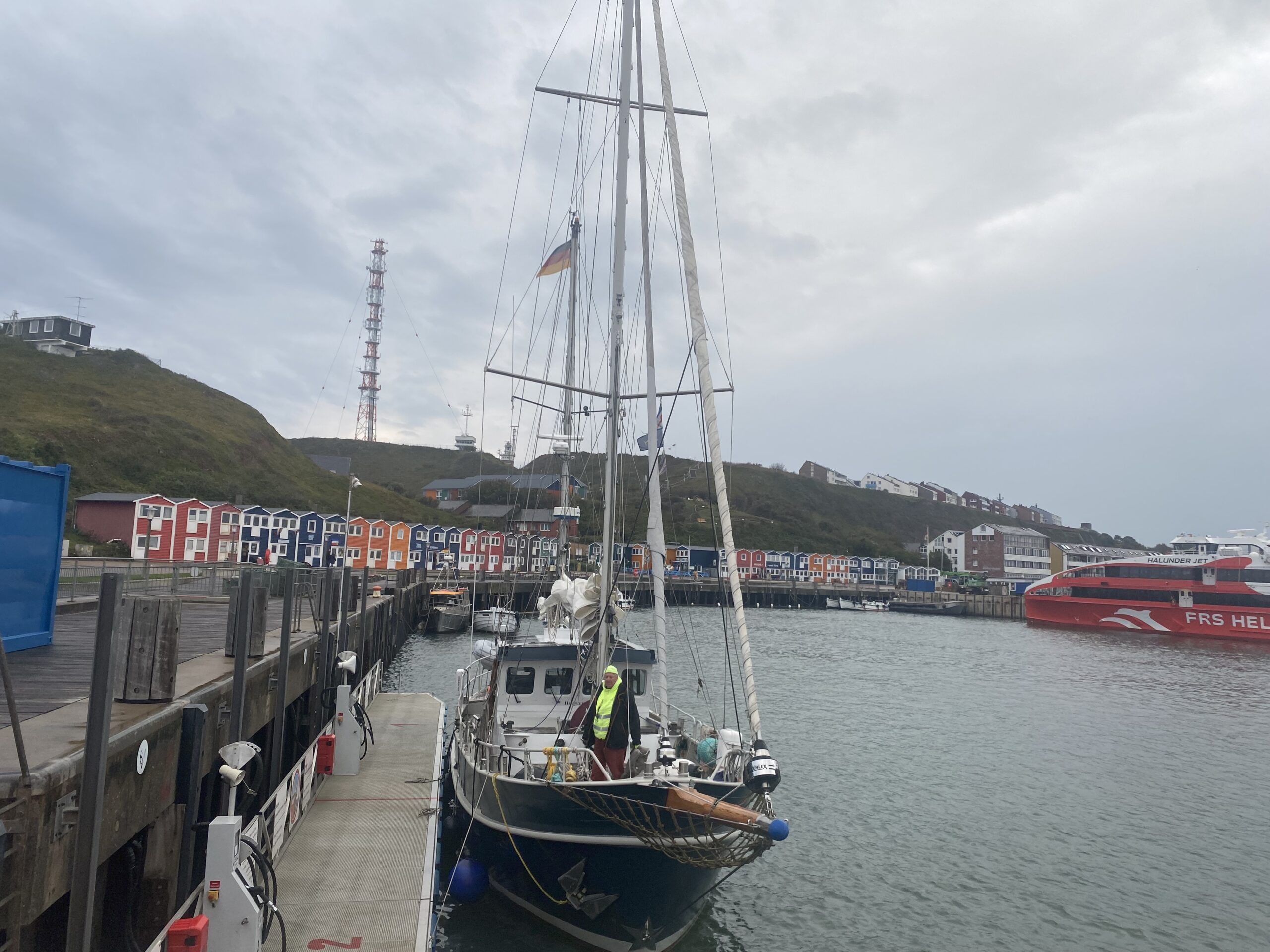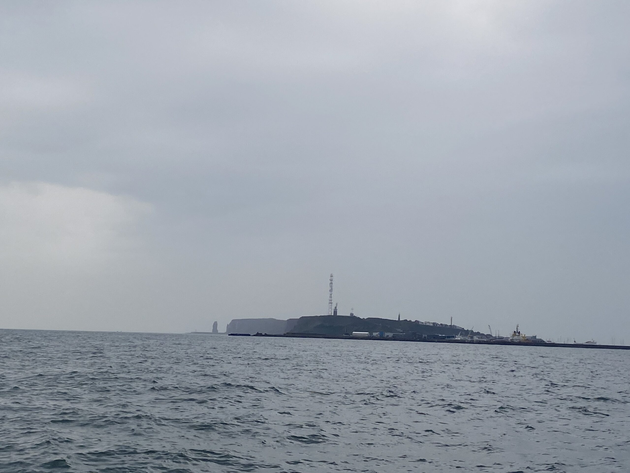 Helgoland kommt in Sicht, leider sehr diesig. Wir laufen erstmal durch zur Bunkerstation und füllen den Tank wieder auf. Dann laufen wir in den Helgoländer Südhafen ein.