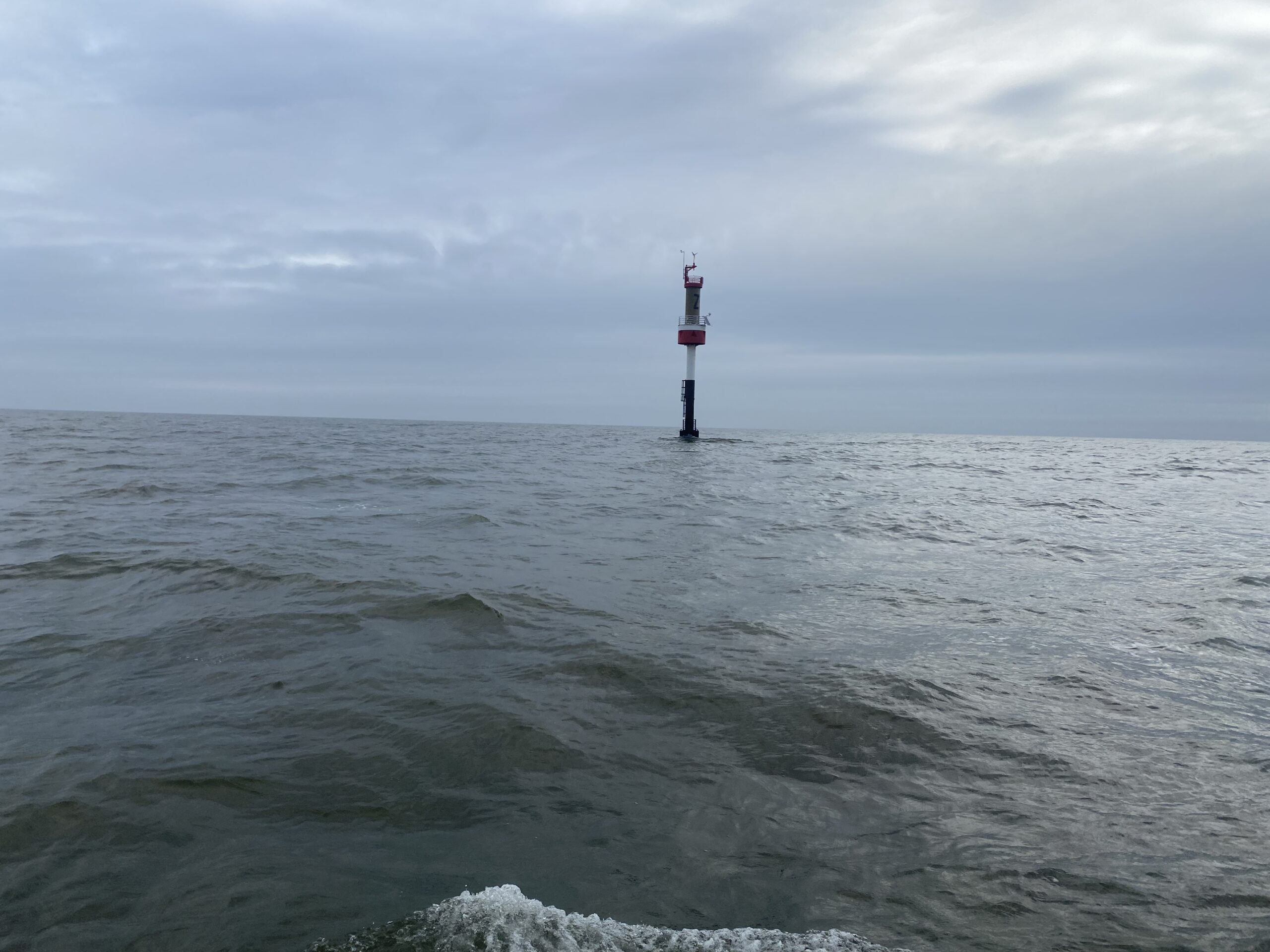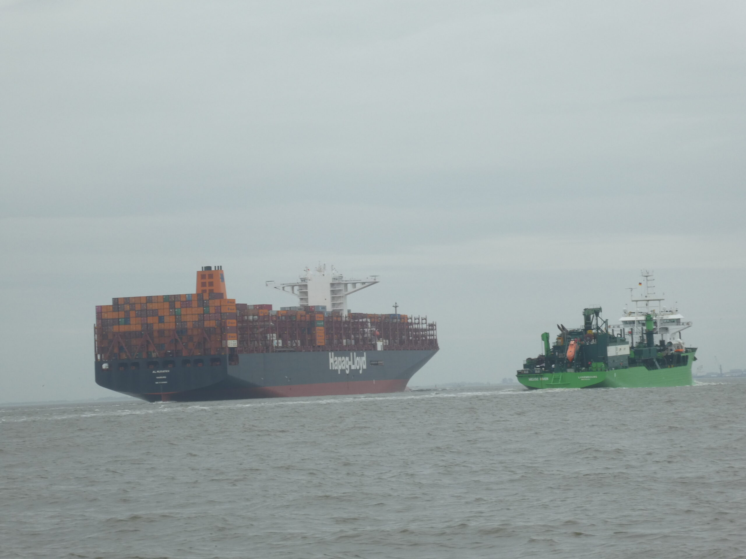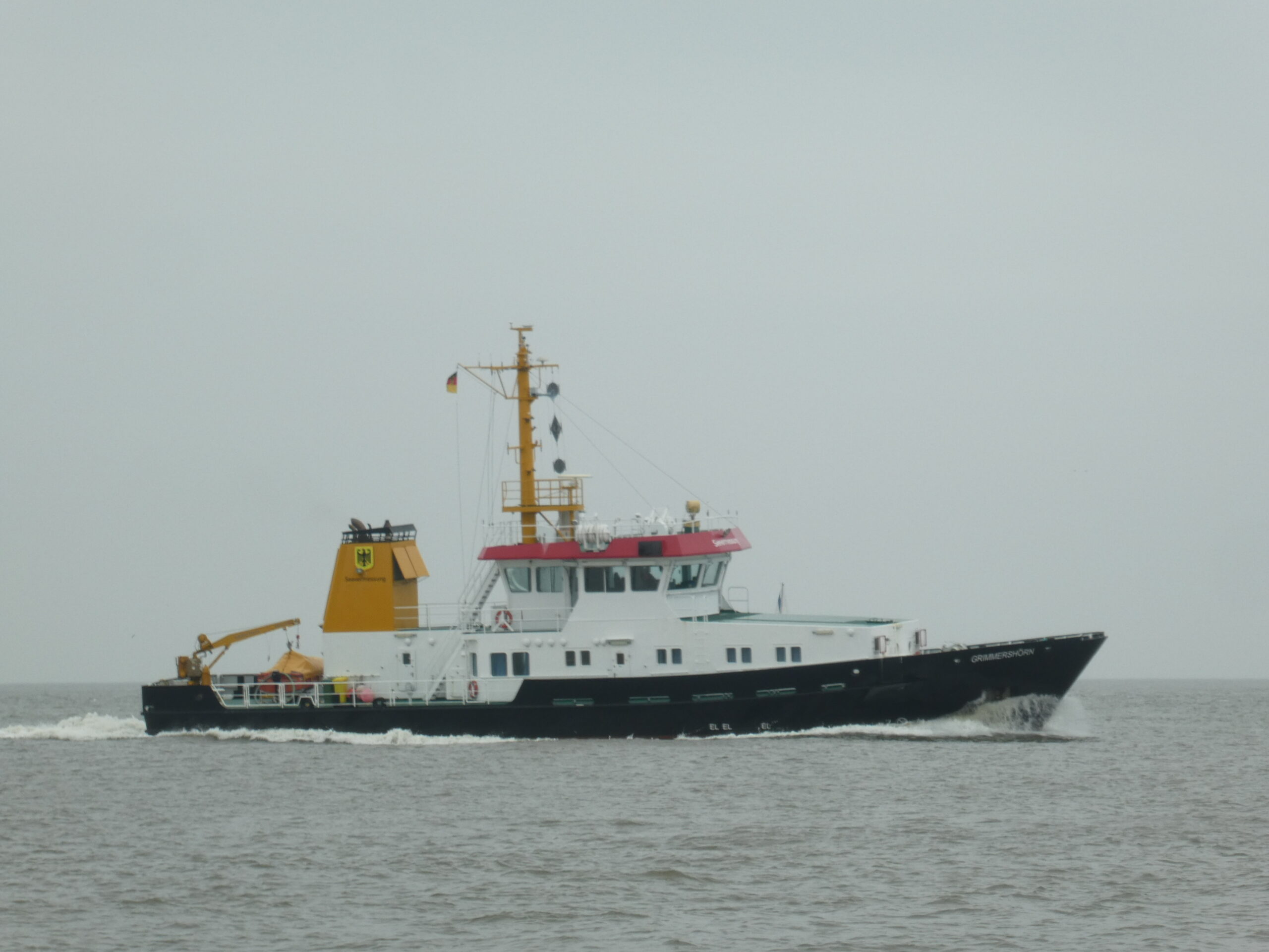 In der Elbmündung kommt uns der erste Krabbenkutter entgegen.