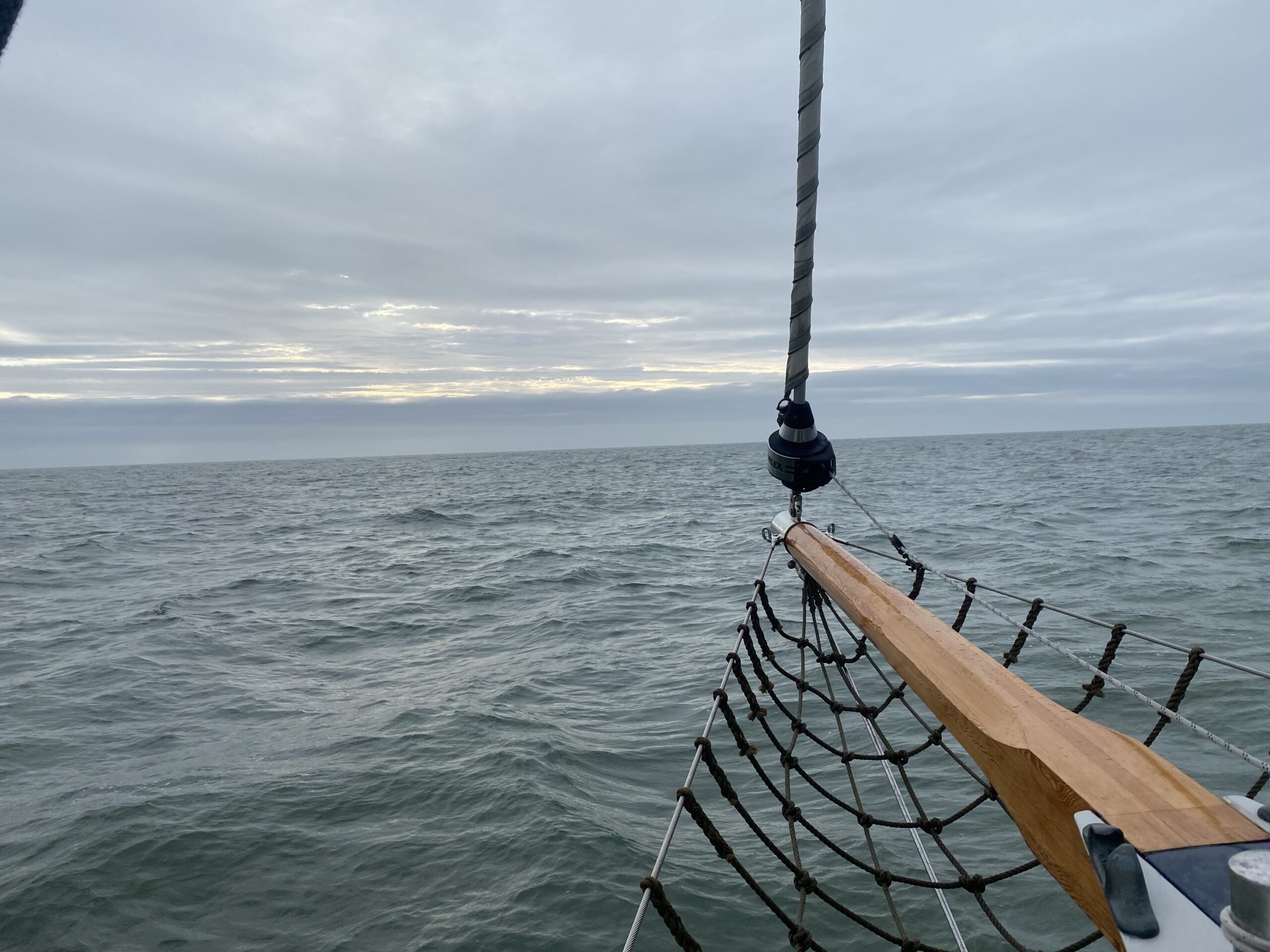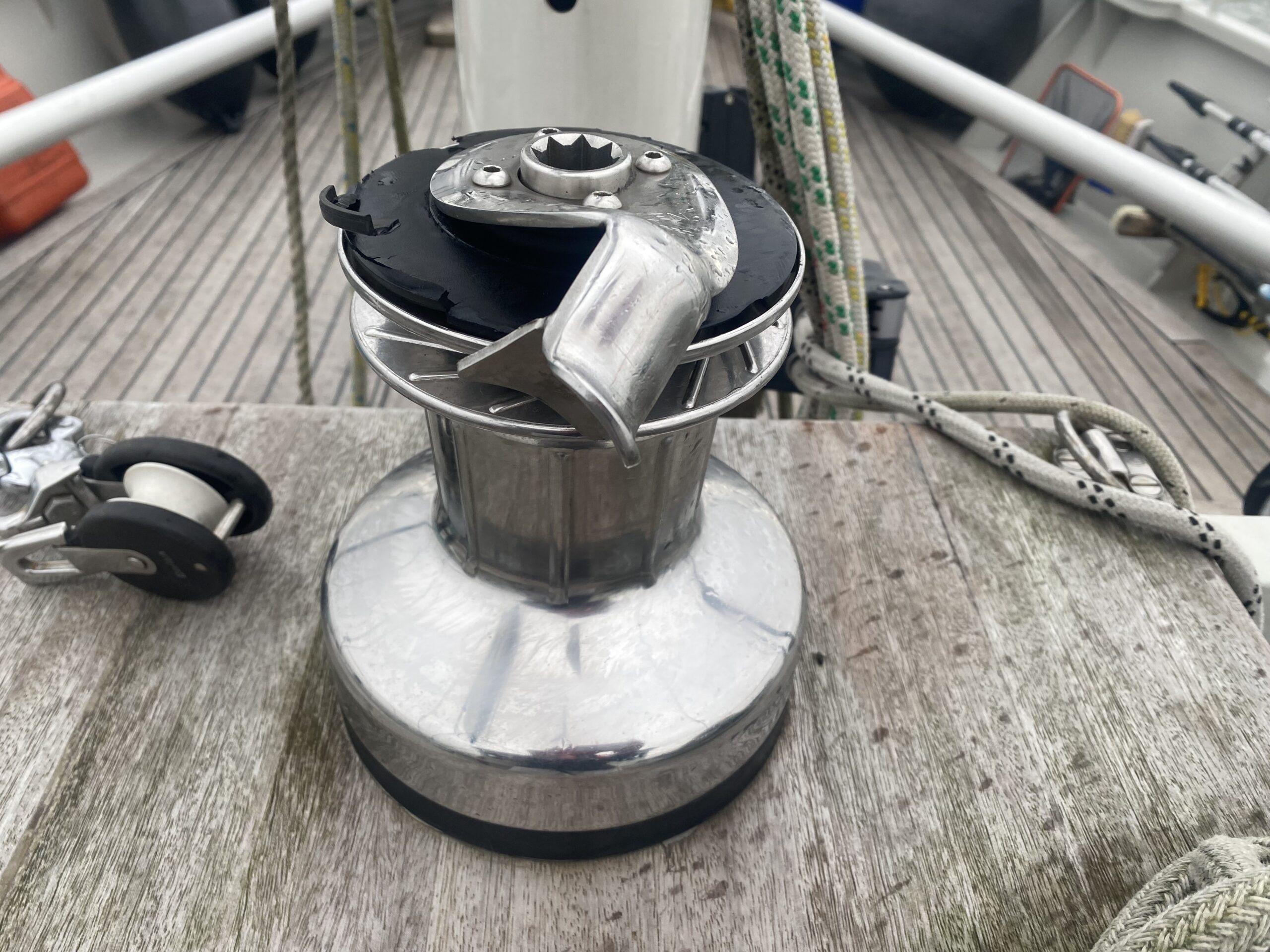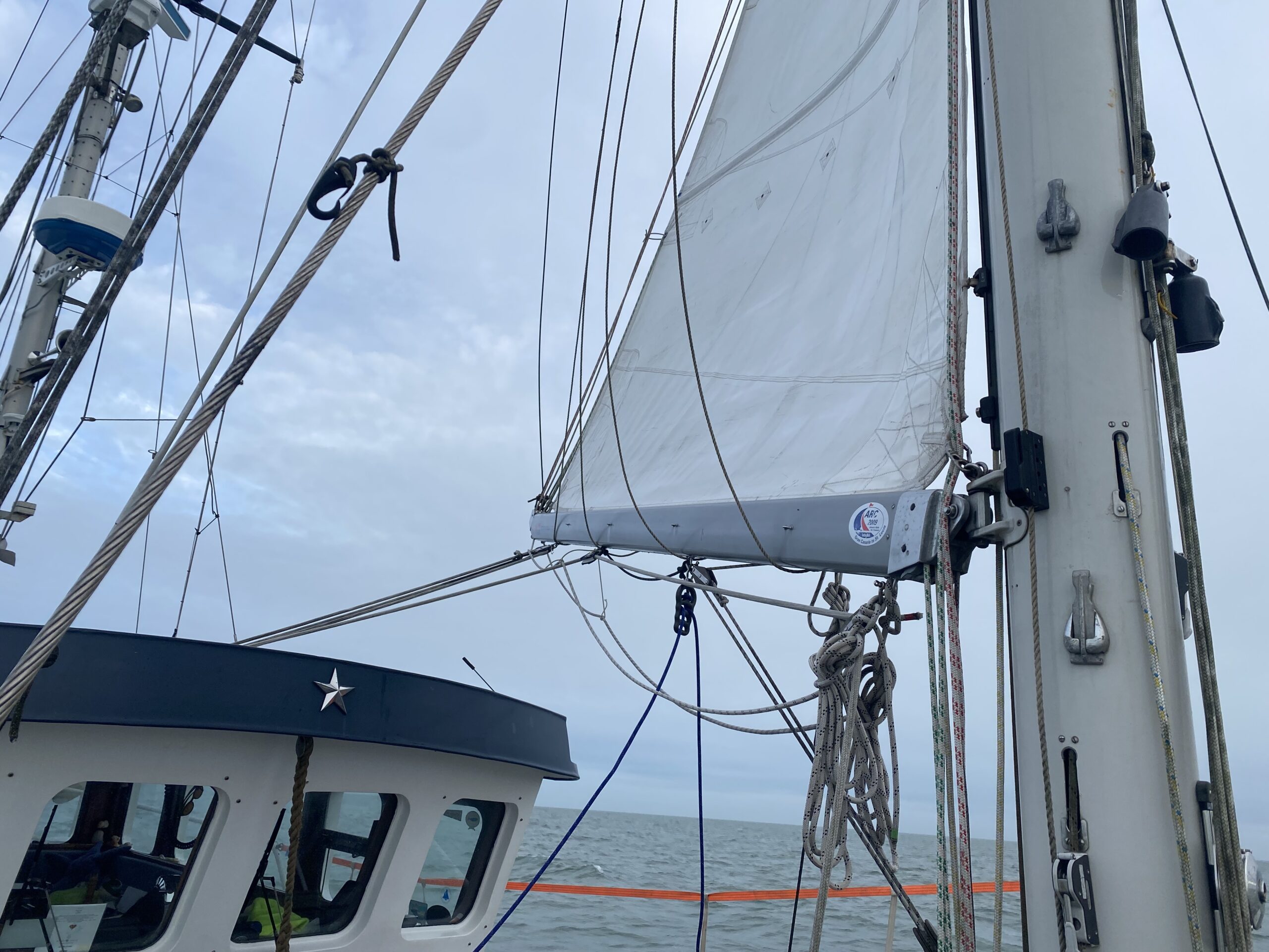 Wir machen alles seeklar und laufen aus Richtung Cuxhaven. Beim Großsegelsetzen im Helgoländer Vorhafen verhakt sich das Großfall um die elektrische Winsch und demoliert sie ziemlich. Wir können sie soweit zurechtbiegen, dass wir sie nutzen können. Der Motor hat zum Glück nichts abbekommen. Shit happens!