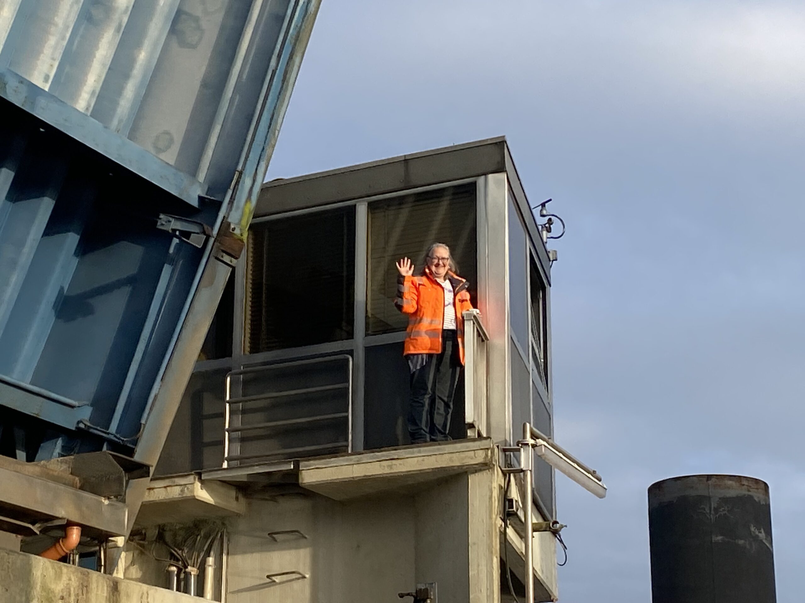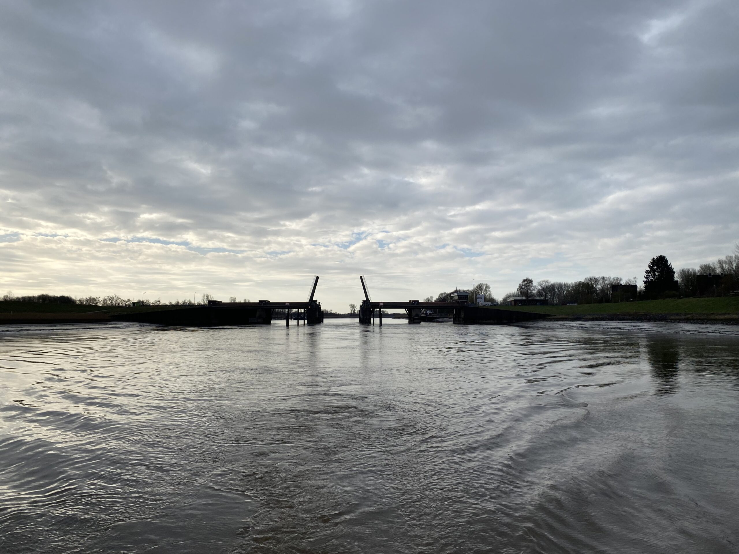 Uta öffnet für uns die Oberndorfer Ostebrücke.