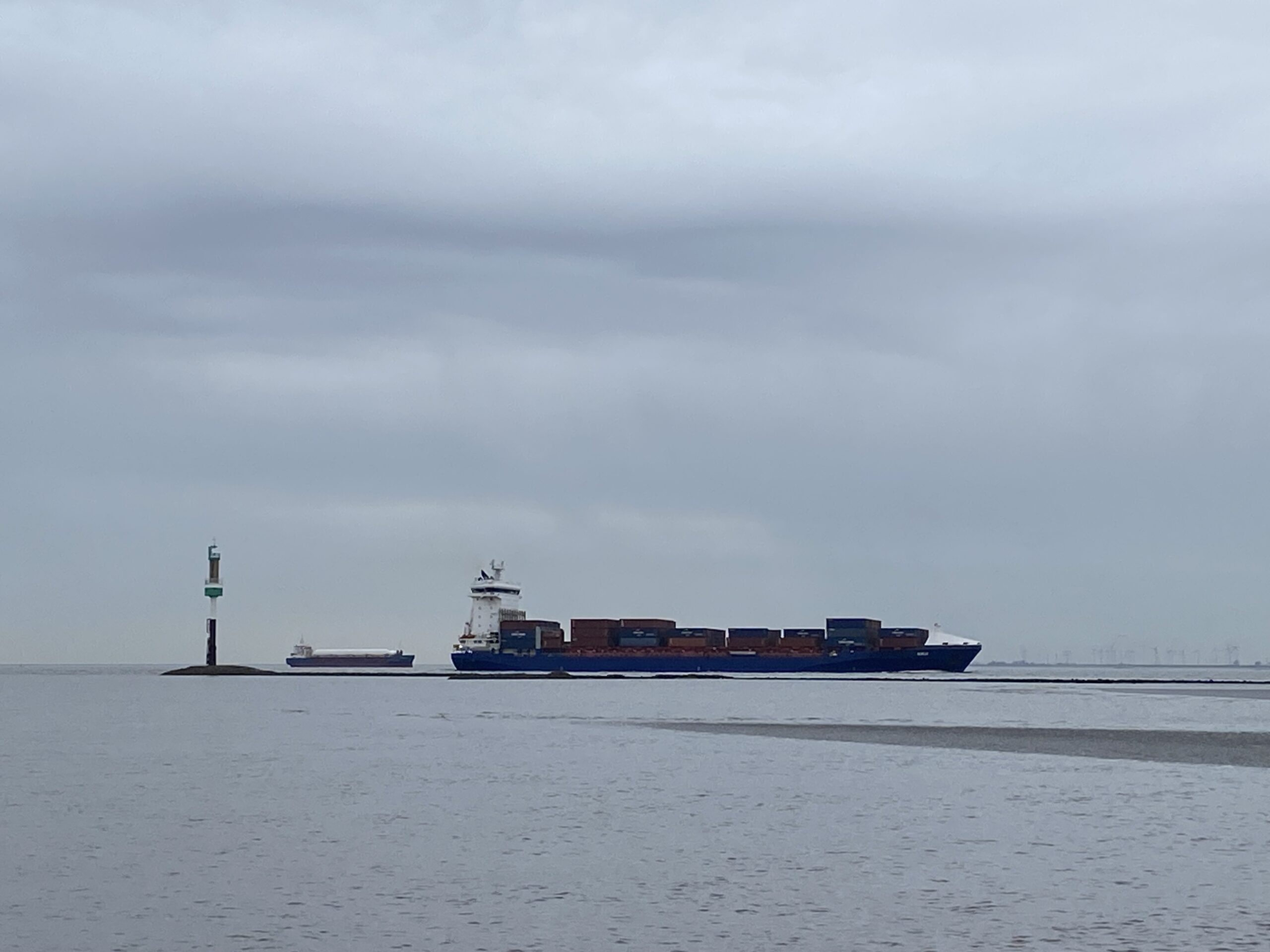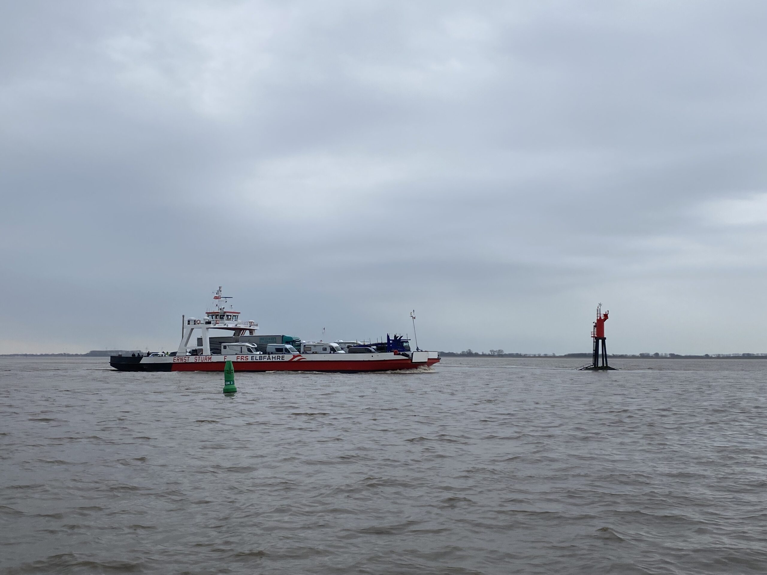 Wir ankern an der Mündung der Oste in die Elbe und warten, bis die Tide kippt, die uns später nach Glückstadt schiebt.