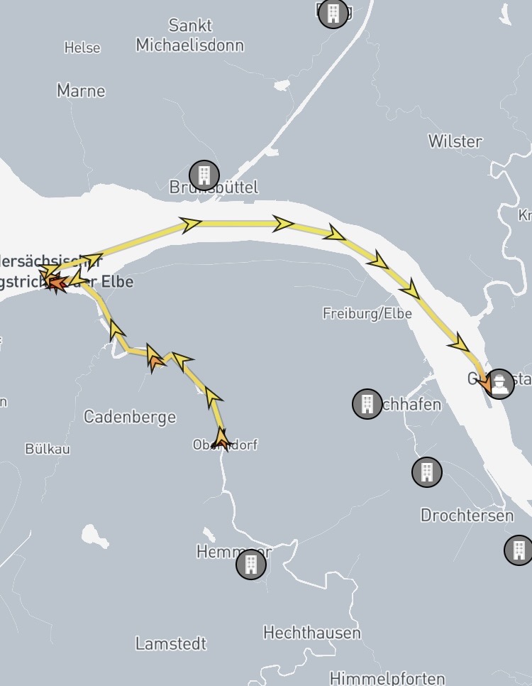 Winterpause beendet. Wir legen in Oberndorf ab. Endlich wieder unterwegs, wenn auch nur ein paar Meilen auf Oste und Elbe.