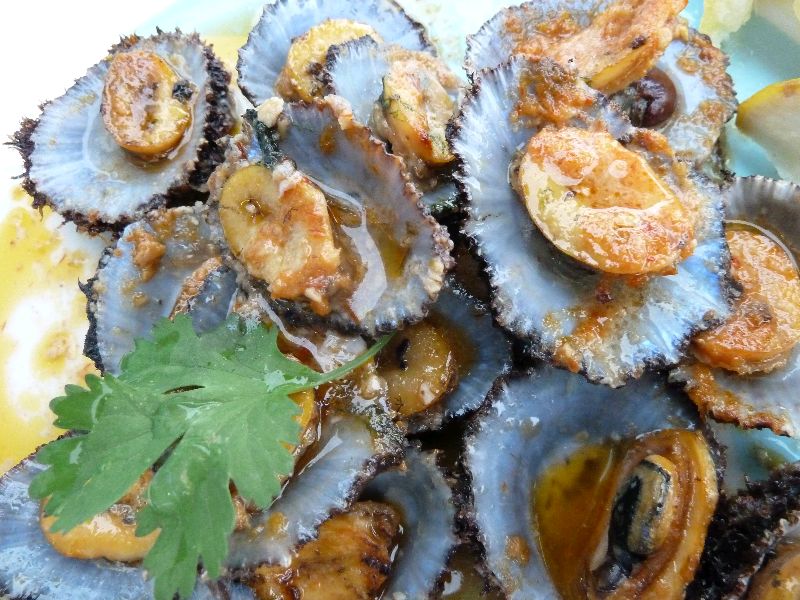 Abschiedsessen- Lapas. Das sind Napfschnecken, die auf den Felsen kleben, viel Knoblauch, viel lecker! Sea u Bert Bert July 1, 2011