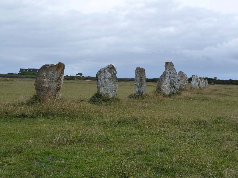 Also, ganz so einfach geht es nicht. Diese Menhire, so die ursprünglich bretonische Bezeichnung für einen aufgerichteten Monolithen, sind die Steinreihen von Lagatjar. Von den ursprünglich 400 Steinen stehen heute noch 72. Die längste Reihe besteht aus 42 Steinen und ist etwa 200 Meter lang. An ihrem nordöstlichen Ende beginnt eine Reihe aus 13 Blöcken, und im Südwesten liegt die dritte Reihe aus 17 großen Menhiren. Beeindruckend, irgendwie ein mystischer Platz, sind diese Hinkelsteine doch schon vor mehr als 4000 Jahren hier aufgestellt worden. Obelix hat da bestimmt nicht mitgeholfen. Und Bert macht nur dicke Backen! Marlene