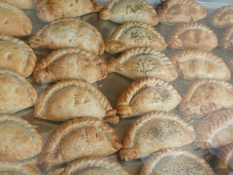 Diese Dinger isst man hier zu Mittag. Blätterteig mit einer meistens Karoffelfleischmischung gefüllt. Sie wurden angeblich für die Minenarbeiter in den Bleistollen erfunden. Blei war auch damals schon giftig. Zum Händewaschen gabs keine Gelegenheit. Also wurden die Pasties mit den Bleifingern am Rand angefasst und aufgefuttert, der Rand weggeworfen. Uns sind die Biester immer zu fett. Sea u Bert