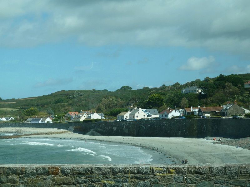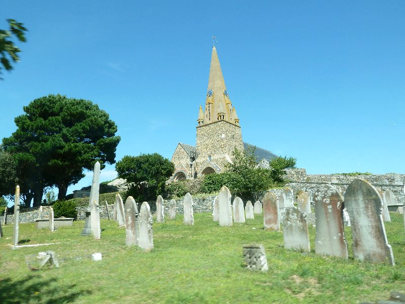 St. Peter Port, Guernsey. Heute sind wir einmal um de Insel, mit dem Linienbus Nr 7. Das dauert 1 Stunde 20 Minuten und kostet 1 Pfund, etwa 1,20 €. Die Strecke führt häufig direkt an der brandungtosenden Küste entlang. Die Bilder sind alle durchs Busfenster gemacht. Jetzt haben wir einen Überblick und werden in den nächsten Tagen einzelne Sehenswürdigkeiten besuchen. Sea u Bert
