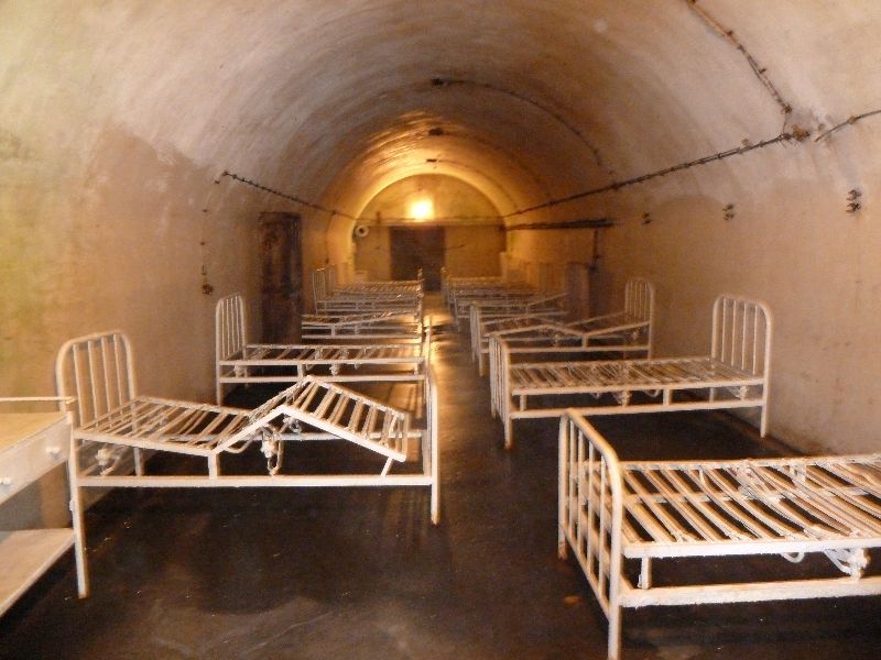 Eines der Betonerbstücke des 2. Weltkrieges haben wir heute besichtigt. Das deutsche unterirdische Militärhospital. Etwa 2 Kilometer Gänge und Räume unter einem Hügel. Das Krankenhaus hatte 800 Betten und war nach 3,5 Jahren Bauzeit nur 9 Monate in Betrieb.