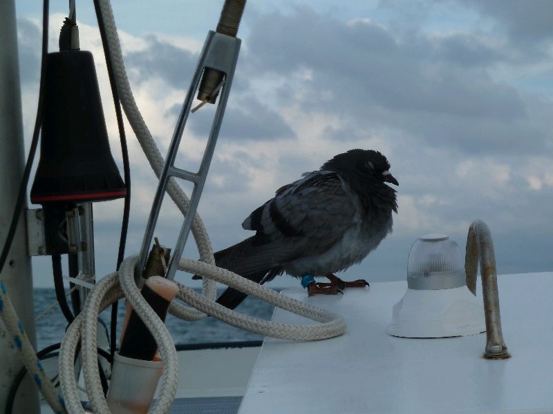 Besuch. In See. Diese Taube hat sich während ihrer Postzustellungsarbeit bei uns erholt und ist eine Nacht lang mitgefahren. Sea u Bert Bert September 1, 2011
