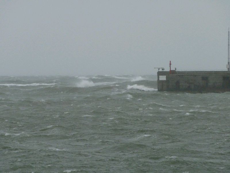 Helgoland. Dieses Mal mit Bildern. Sorry. Zum ersten Mal seit über zwei Jahren hatte ich heute Ölzeug an, und das im Hafen. Der Wind ist stetig über acht, in Böen bis 11. Die Brecher gehen über die Südmole. Bei den Touristen ist ‘Stormwatching’ das Thema. Heimkehr liegt gut und wenn der Wind wie angekündigt westlich dreht wird es noch besser. Sea u Bert
